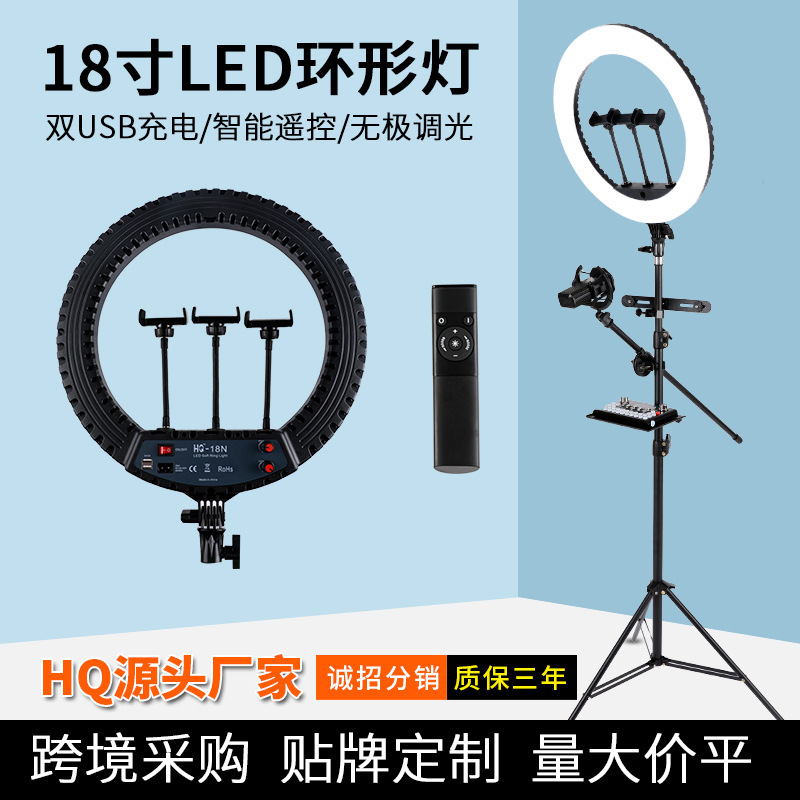 18 인치 라이브 라이트 보충 앵커 아름다움 부드러운 피부 떨림 인터넷 유명인 셀카 무단 디밍 LED 슈팅 링 라이트