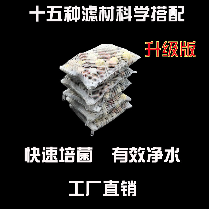 仟鱼十三合一过滤材料,经过长时间实验研究,采用科学配比,混合15种过滤材料,满足你鱼缸过滤需求。五合一滤材为普通版本(包含黄色细菌环、火山石、除氨石、陶瓷环、珊瑚砂)undefined