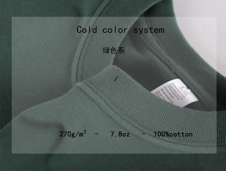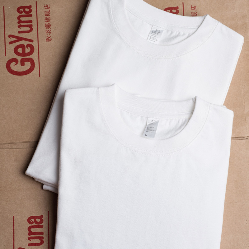 Geyuna 270g 단색 헤이즈 블루 정글 그린 모란디 컬러 순면 티셔츠 남성용 헤비 모리 반소매 조수스토어 가기