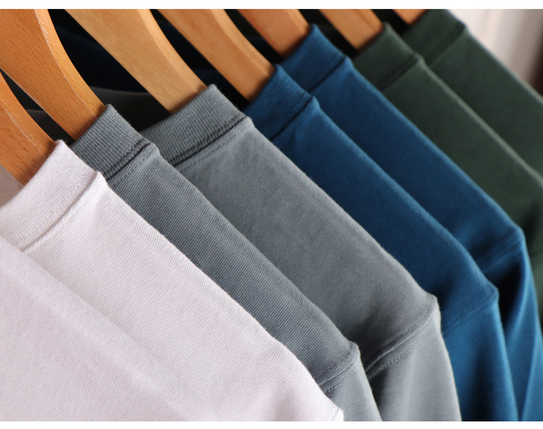 Geyuna 270g 단색 헤이즈 블루 정글 그린 모란디 컬러 순면 티셔츠 남성용 헤비 모리 반소매 조수