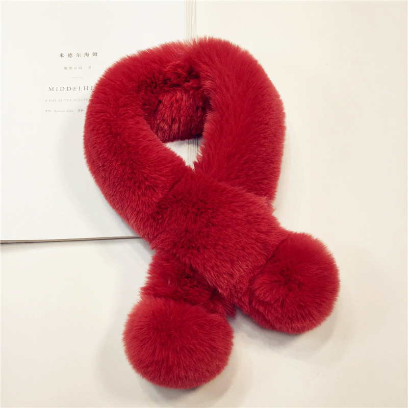 겨울 새로운 한국식 모피 볼 스카프 어린이 남성과 여성의 모조 렉스 토끼 모피 패션 모든 매치 두꺼운 귀여운 크로스 따뜻한