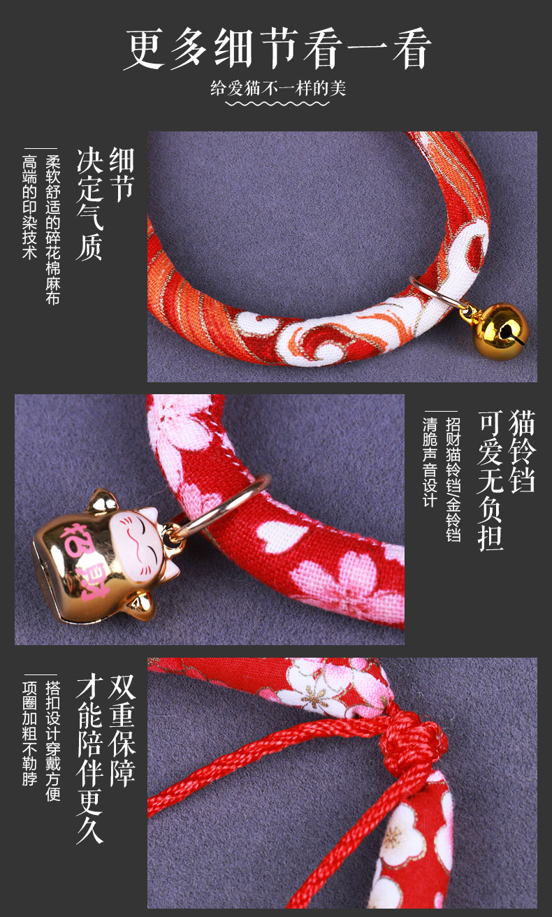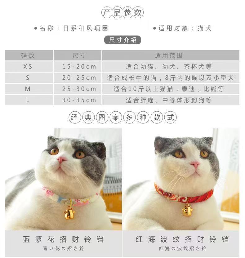 고양이와 강아지를 위한 벨이 달린 행운의 고양이 목걸이, 애완동물 고양이와 강아지 액세서리, 수제 일본식/한국식 스타일스토어 가기