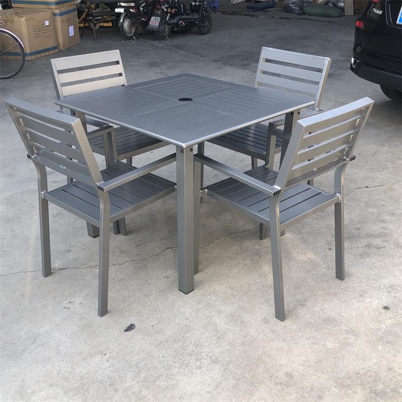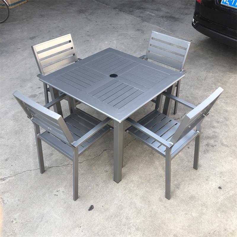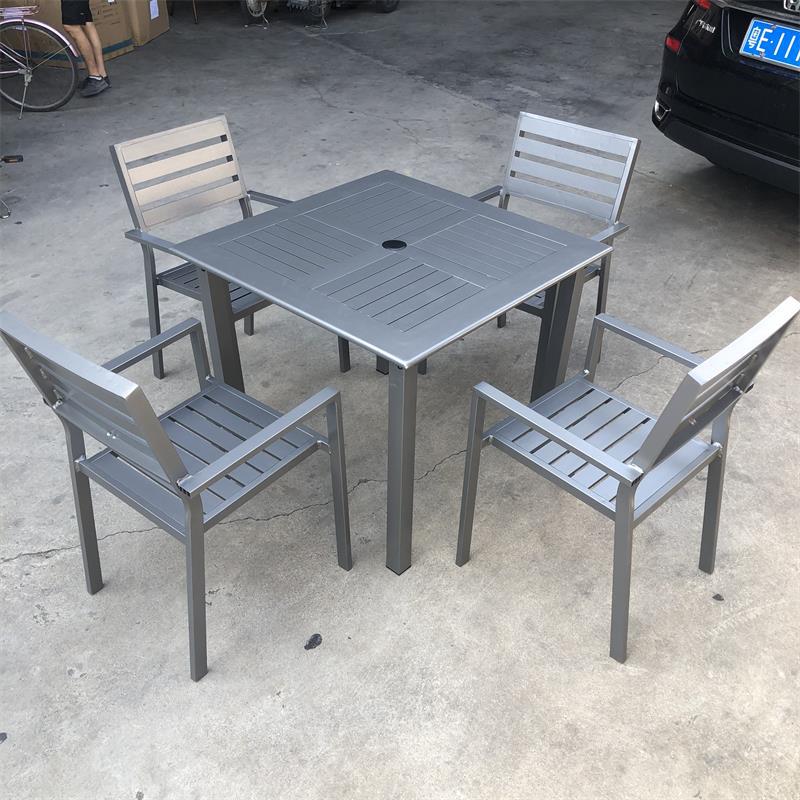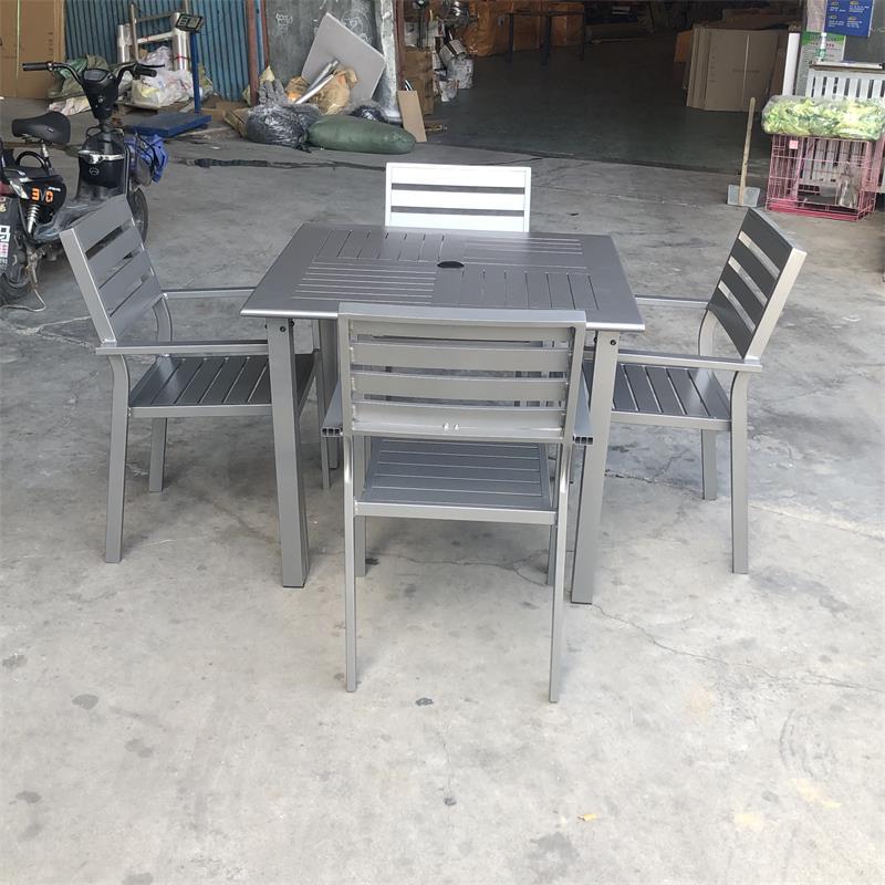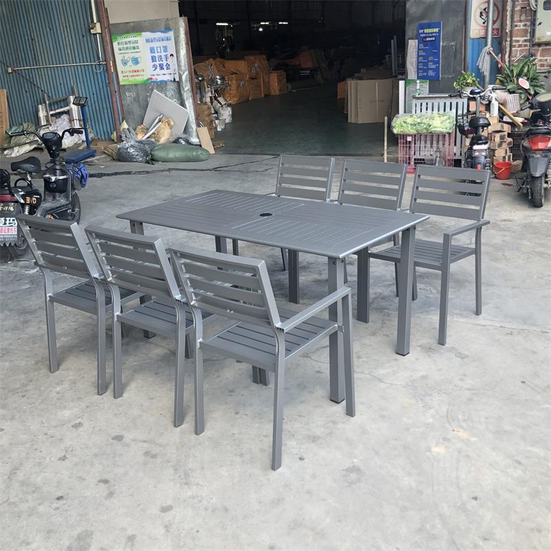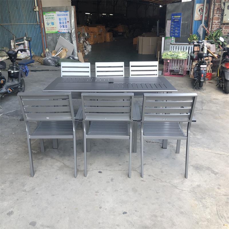 모조 목재 야외 테이블과 의자 발코니 식탁 방수 선 스크린 안뜰 정원 호텔 레저 부식 방지 플라스틱 나무 긴 테이블 커스텀스토어 가기