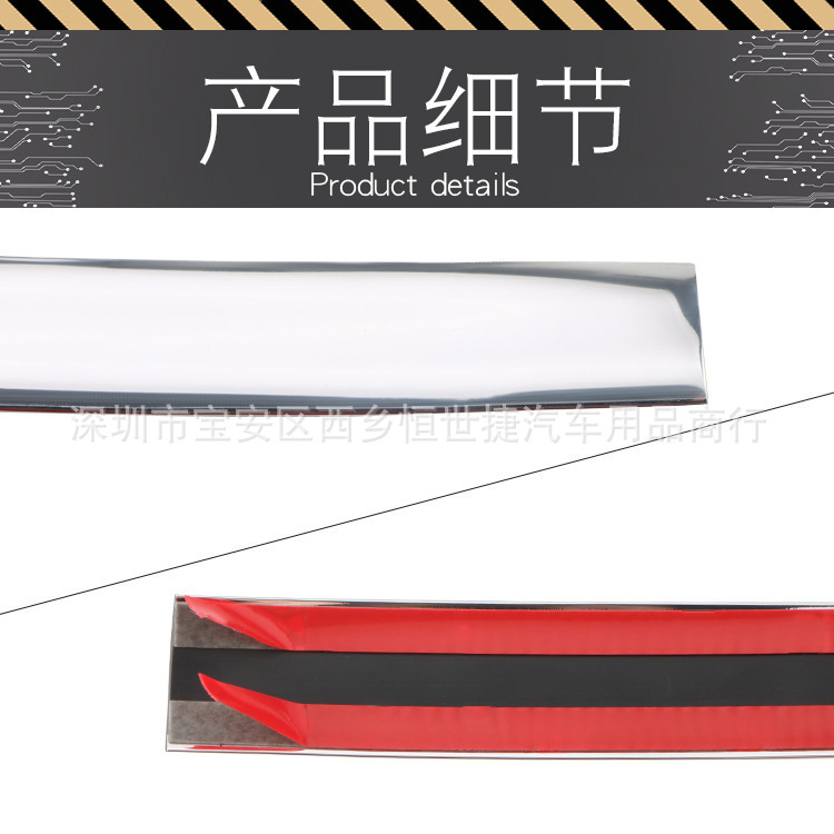 2.去掉轮弧背面胶带离形纸,将轮弧其一端贴于车轮凸部外侧适当位置处,则依车轮凸部之曲线弯曲,对齐后将整条引导贴于车体上。