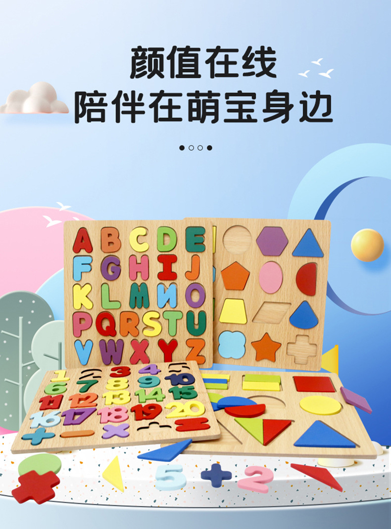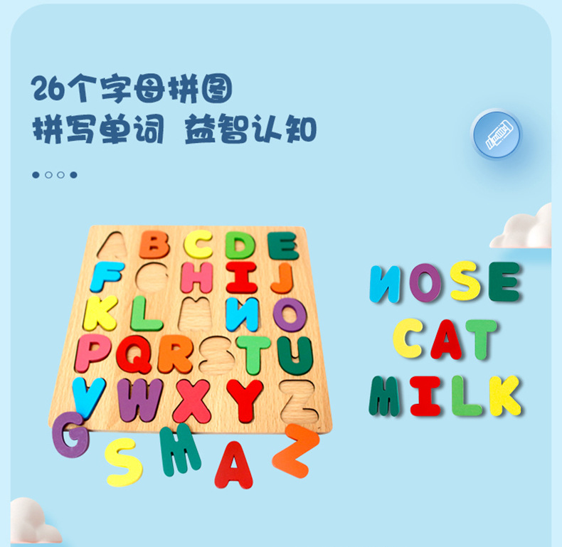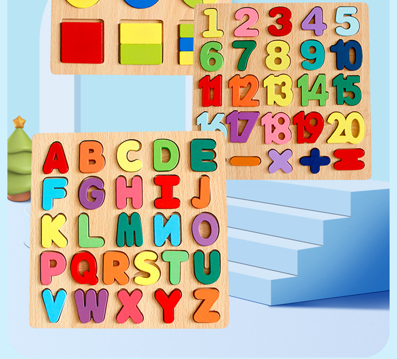 나무 알파벳 숫자 맞추기 퍼즐 유아 조기 교육 교구 장난감 도매 나무 조립스토어 가기
