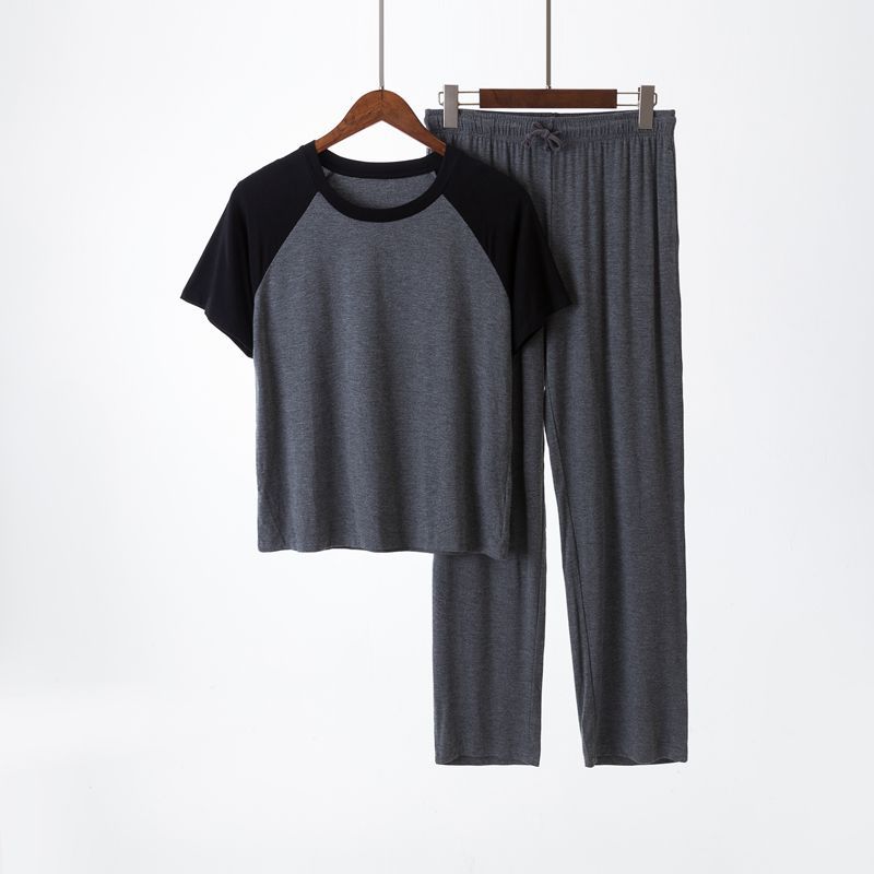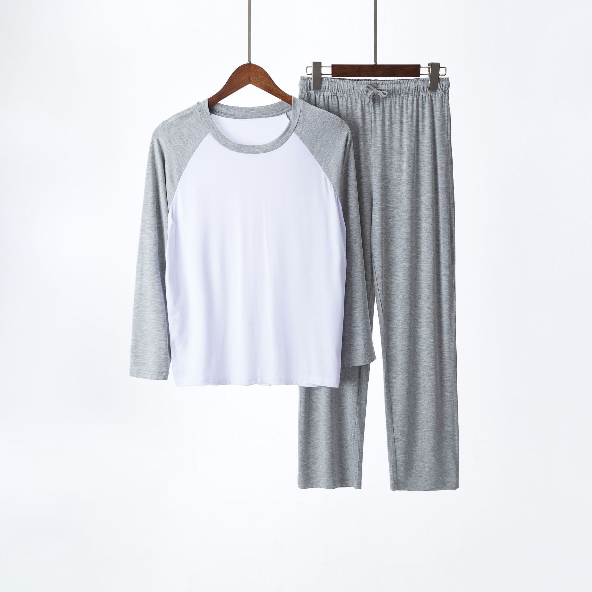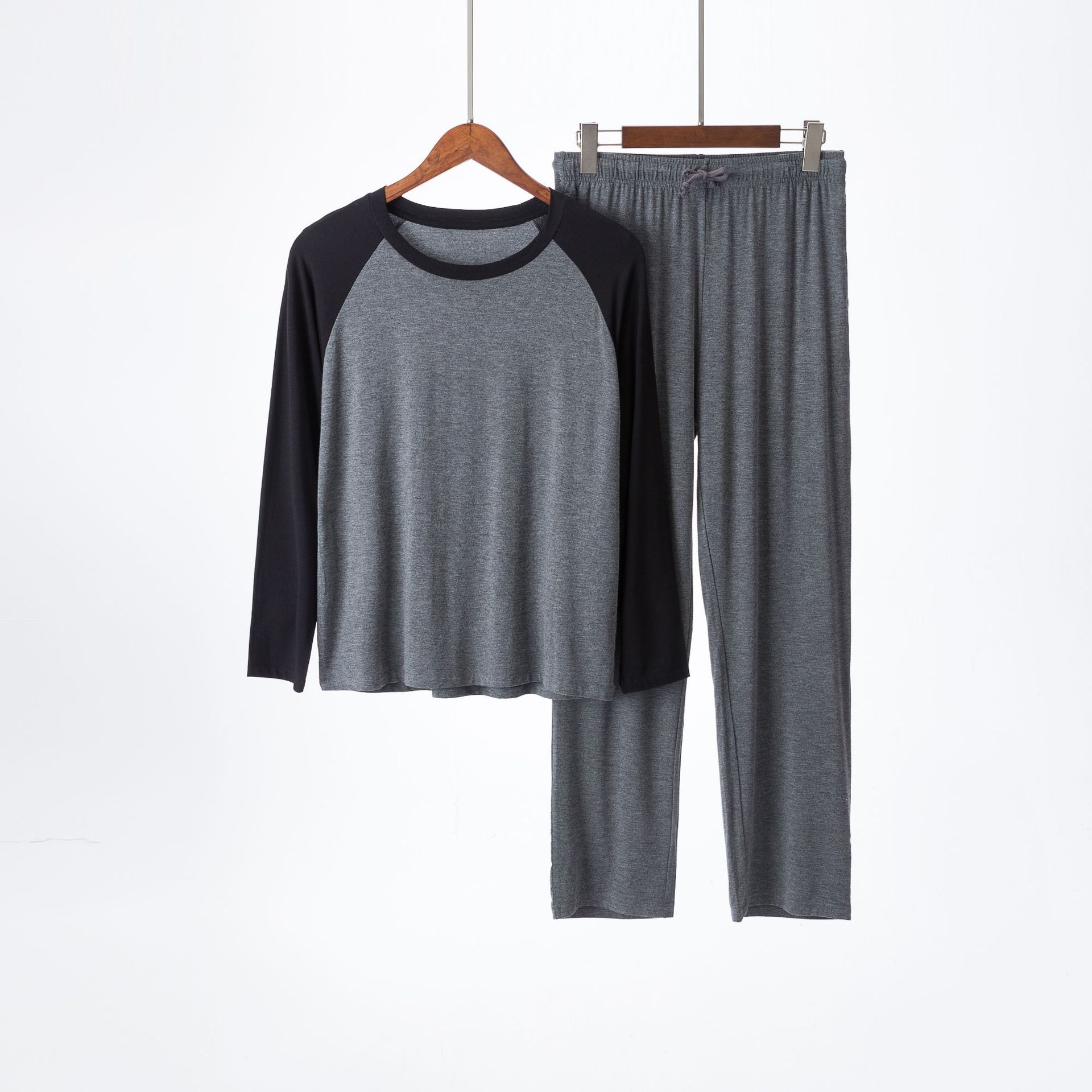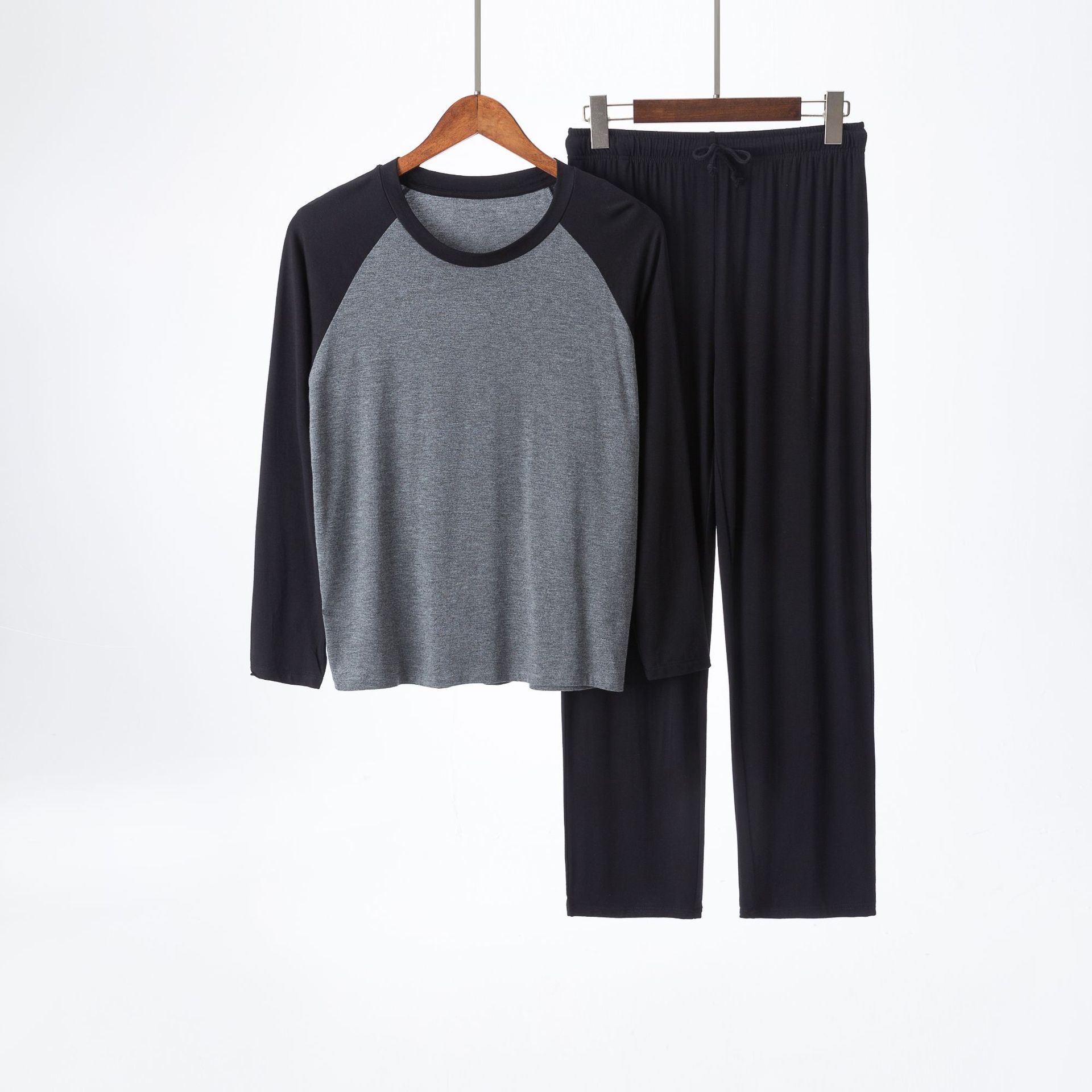 모달 잠옷 봄과 가을 입고 캐주얼 남성 티셔츠 심플 플러스 사이즈 느슨한 긴팔 가정복 세트 남성스토어 가기