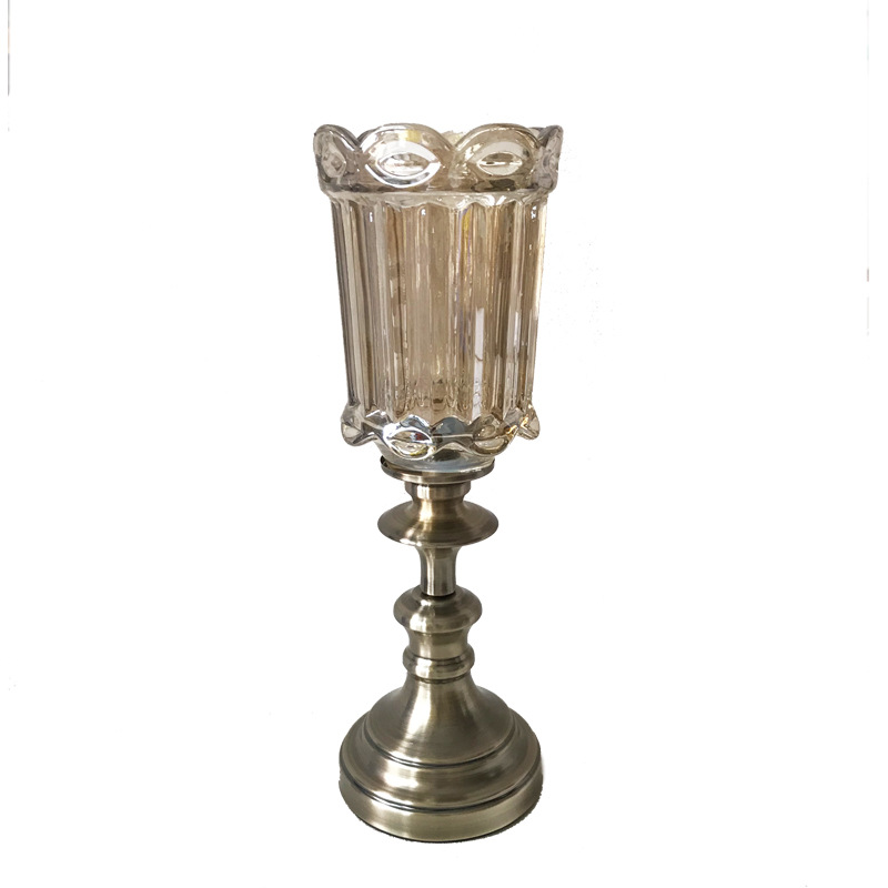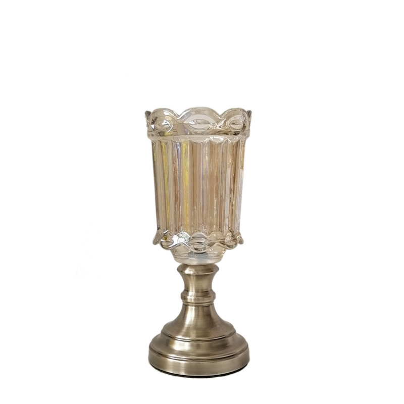 유럽 스타일 창조적 인 유리 꽃병 공예 유리 꽃병 거실 장식 가정용 금속 꽃 배열 도금 장식품