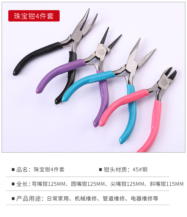 제조업체 공급 보석 펜치 4 피스 블루 뾰족한 코 펜치 보라색 둥근 코 펜치 검정 곡선 코 펜치스토어 가기