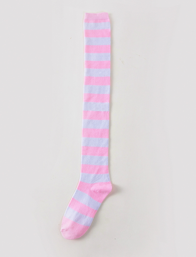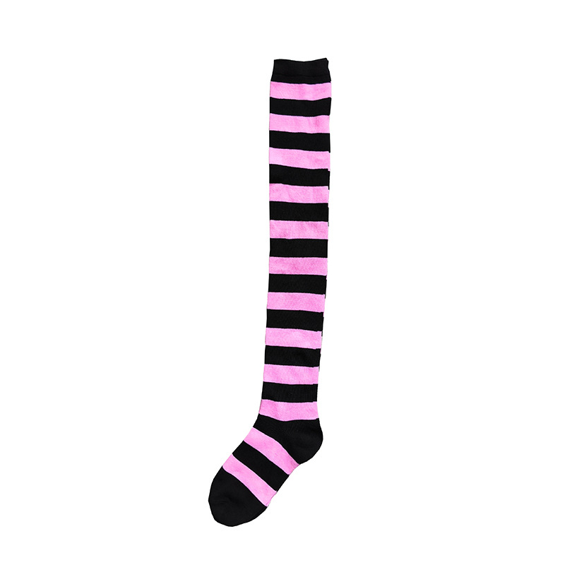 일본 스트라이프 스타킹 여자 JK 유니폼 아카데믹 스타일 하이 스타킹 슬리밍 무릎 위 허벅지 다채로운 스트립 힐 양말 학생