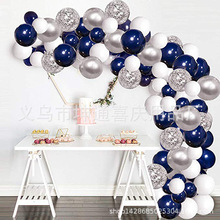 跨境热卖海军蓝气球链套装生日派对婚庆组合墨蓝气球婚礼节日装饰