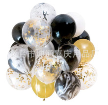 亚马逊热卖12寸黑金玛瑙气球婚礼派对装饰网红生日装饰金色亮片球