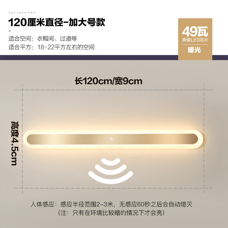 • 인체 유도 램프 골드 120cm 따뜻한 빛 49W