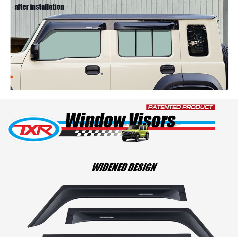 TXR는 스즈키 짐니 자동차용으로 적합하며, 자동차 창문 레인 쉴드, 레인 바이저, 레인 디플렉터 액세서리입니다.