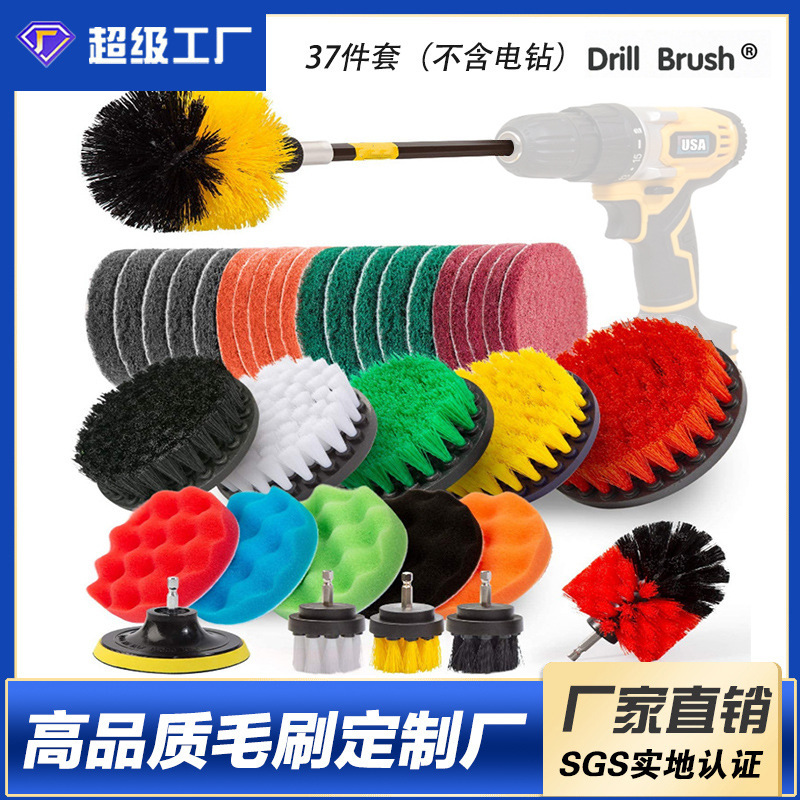 37件套套装内包含:钻刷,百洁布,海绵垫,延长杆,粘盘