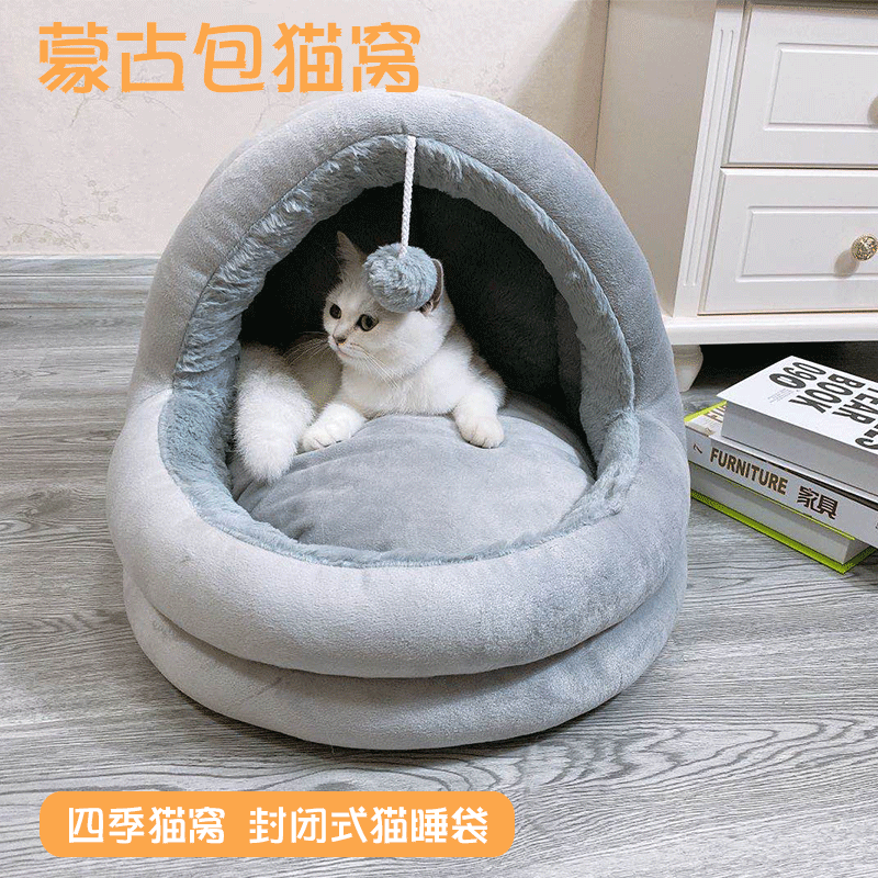 그물 빨간 고양이 개집 개 사육장 겨울 따뜻한 유르트 반 폐쇄 고양이 침대 네스트 빌라 애완 동물 사계절 용품스토어 가기