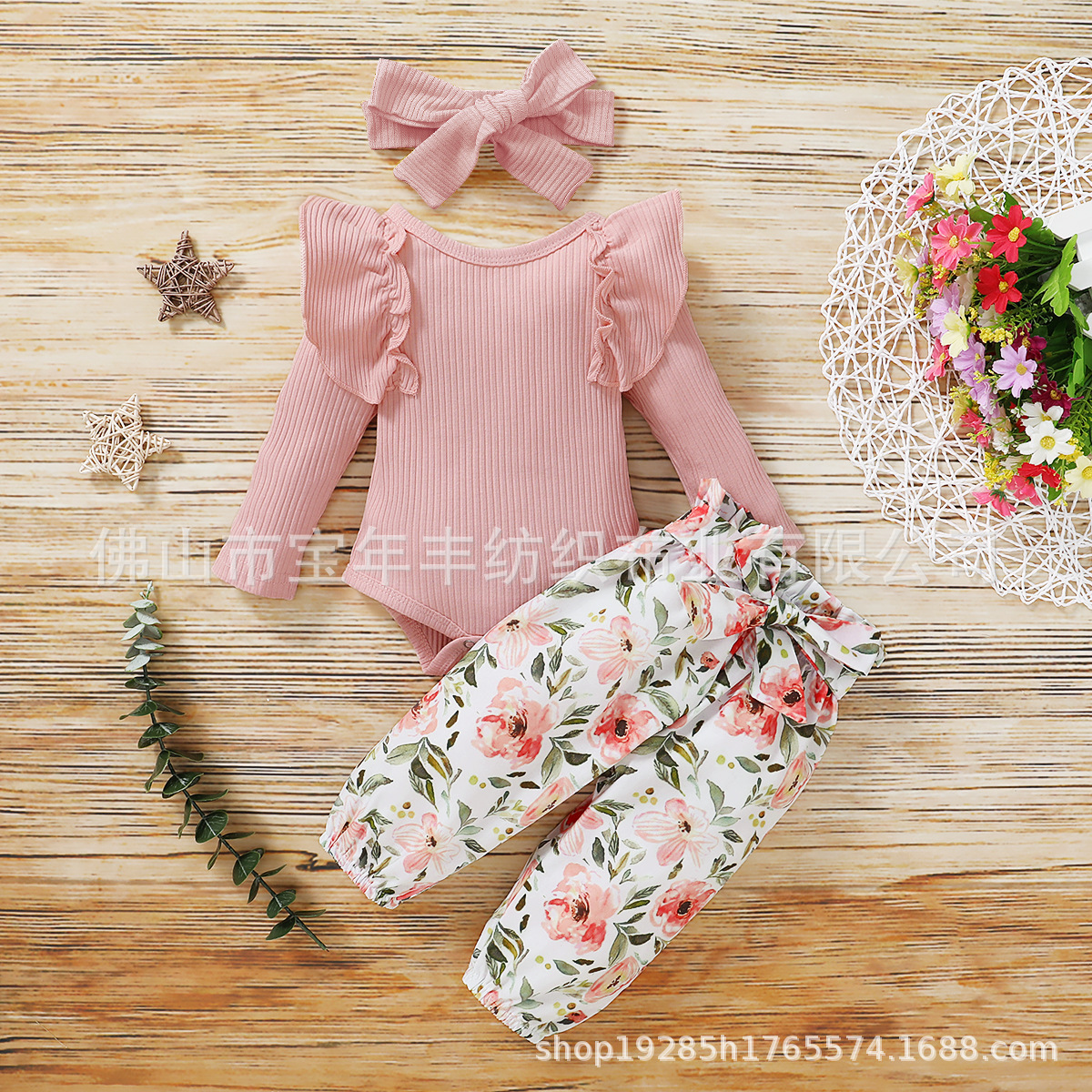 크로스 보더 2020 아마존 폭발의 새로운 아기 소녀 구덩이 긴 소매 꽉 토끼와 꽃 바지스토어 가기