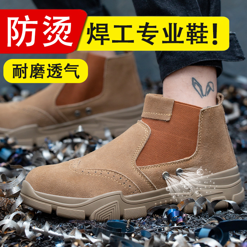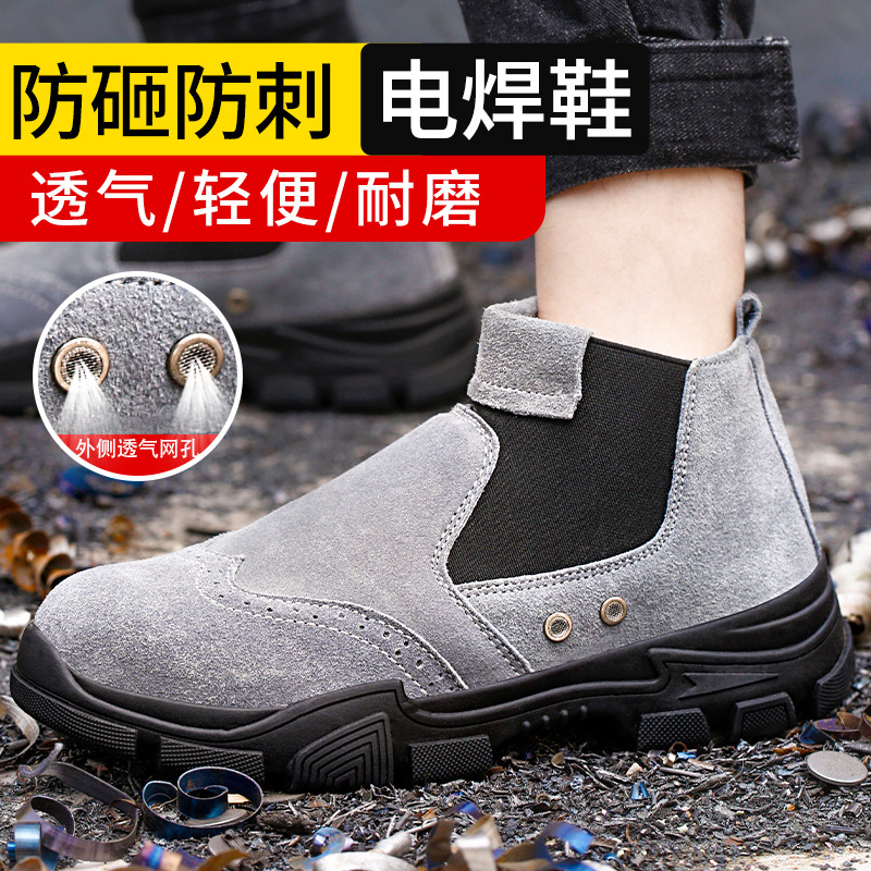 공장 도매 통기성 안티 스매싱 안티 찌르기 노동 보호 부츠 카키 안티 플리스 가죽 미끄럼 방지 로우 탑 안전 신발스토어 가기