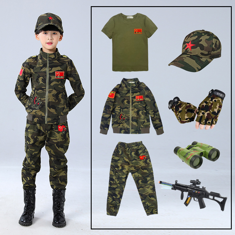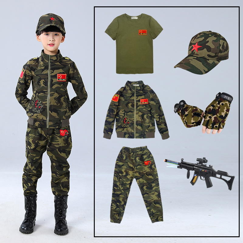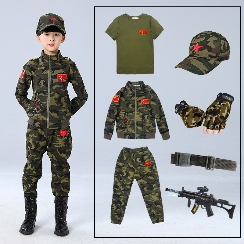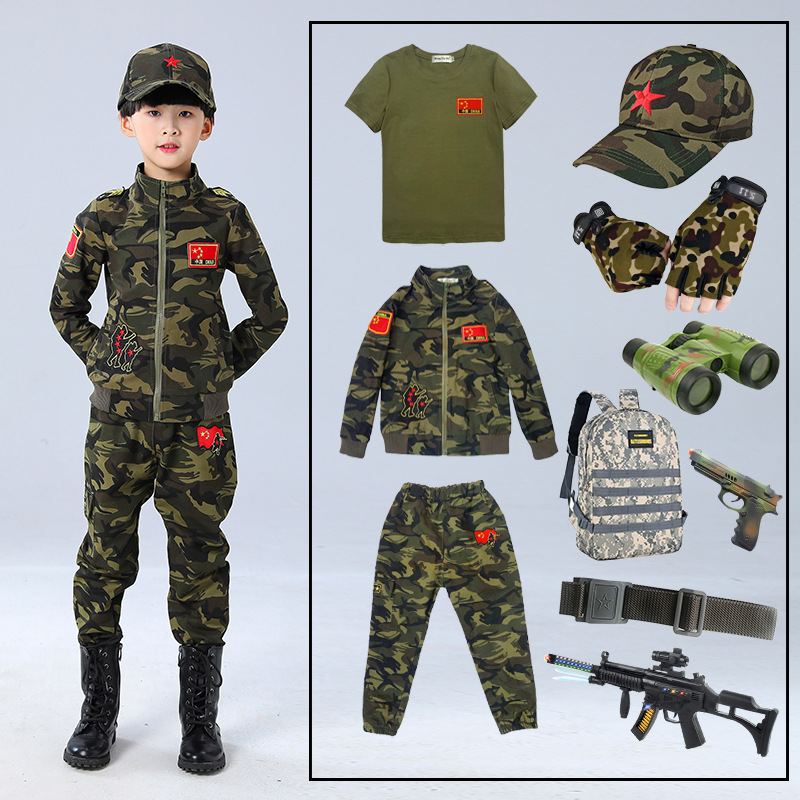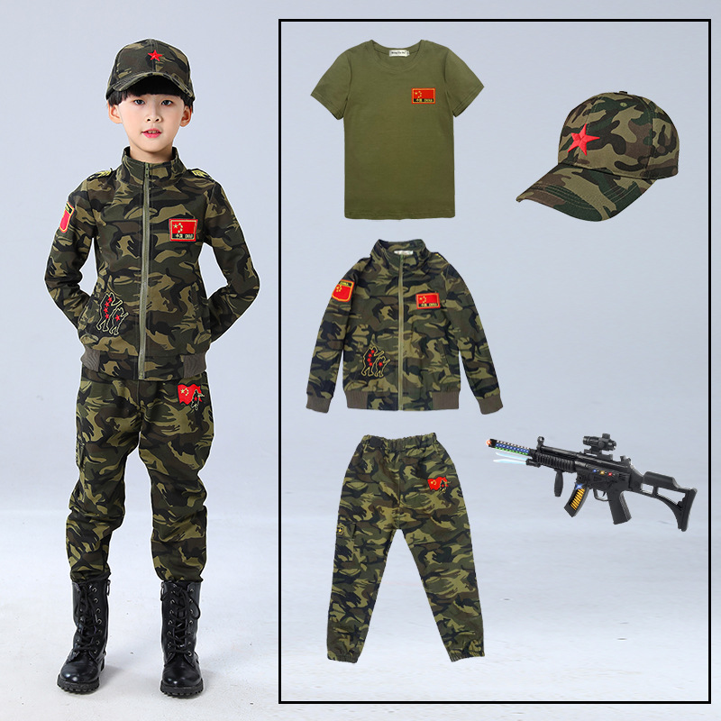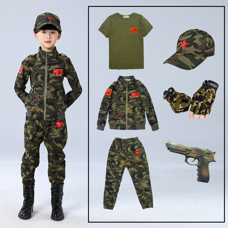 어린이 위장복 세트 남아 특수부대 초중등학생 군사훈련복 군복 봄철 면 위장 스타일