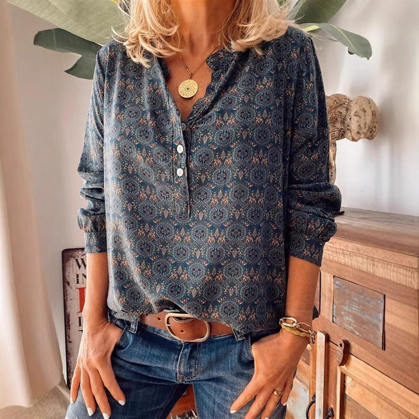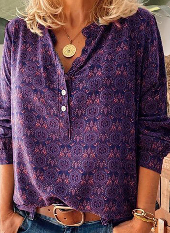 AliExpress 이베이 2020 봄 뉴 빈티지 프린트 긴팔 캐주얼 블라우스 탑