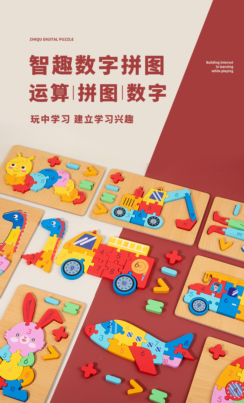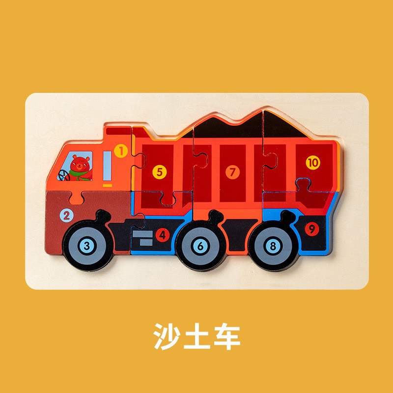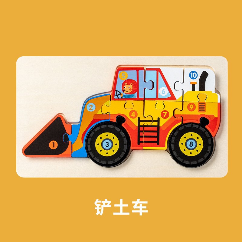 나무 3D 입체 버클 그림 입체 직소 퍼즐 유치원 조기 교육 동물 디지털 교통 직소 퍼즐 장난감스토어 가기