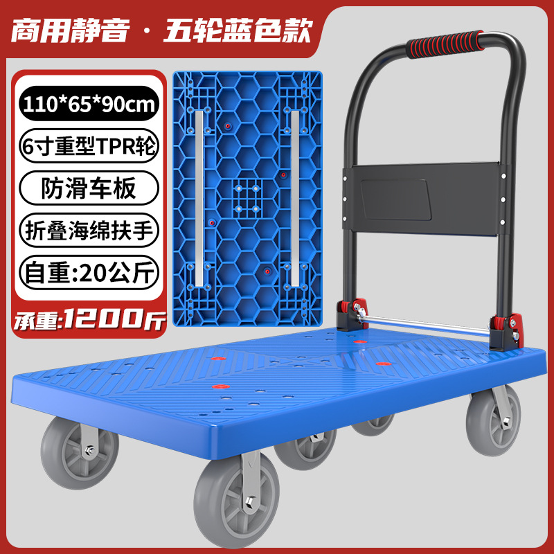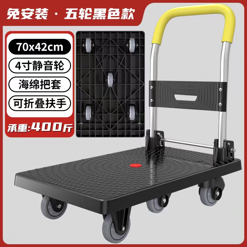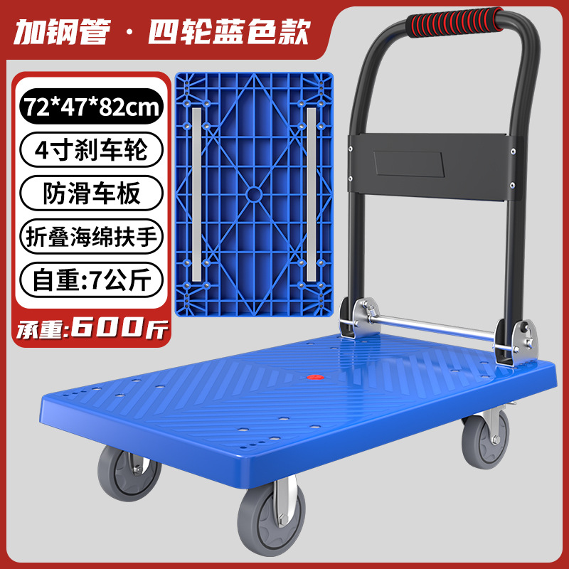 트롤리 풀 상품 접이식 플랫 베드 트럭 플라스틱 트롤리 창고 취급 트레일러 4 륜 트롤리 제조 업체스토어 가기