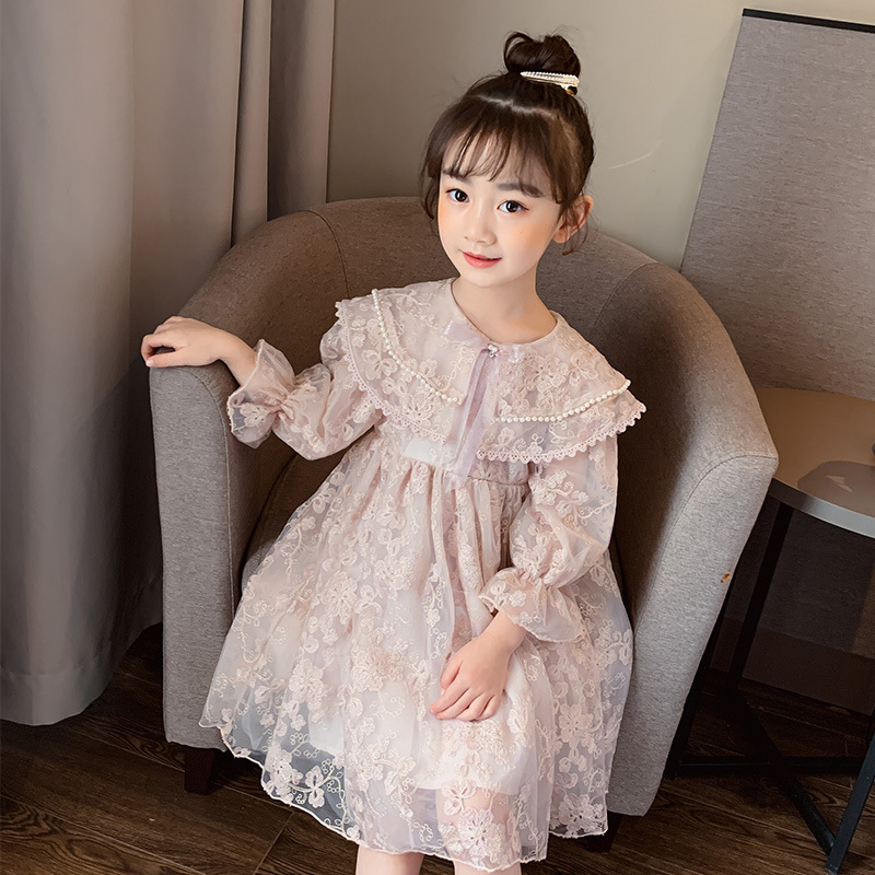 아동복 소녀 한국 스타일 슈퍼 외국 스타일 레이스 메쉬 공주 스커트 새로운 2023 중간 및 큰 어린이 긴 소매 원피스 유행 어린이스토어 가기
