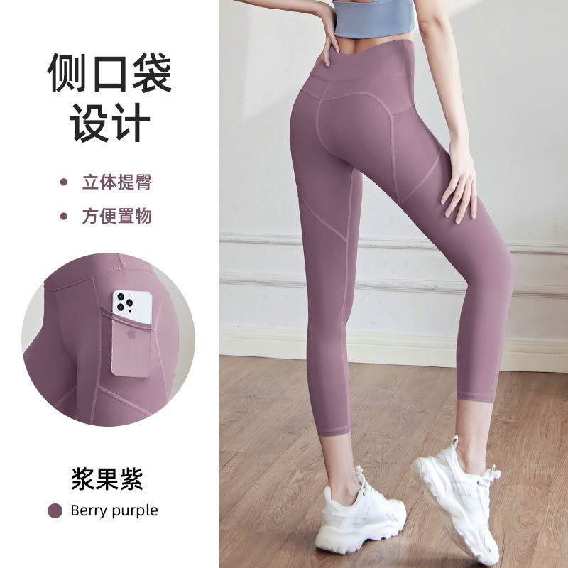 복숭아 엉덩이 바지 유럽과 미국 스포츠 휘트니스 높은 허리 배꼽 꽉 바지 높은 탄성 엉덩이 리프팅 플러스 사이즈 발 요가 바지 여성용