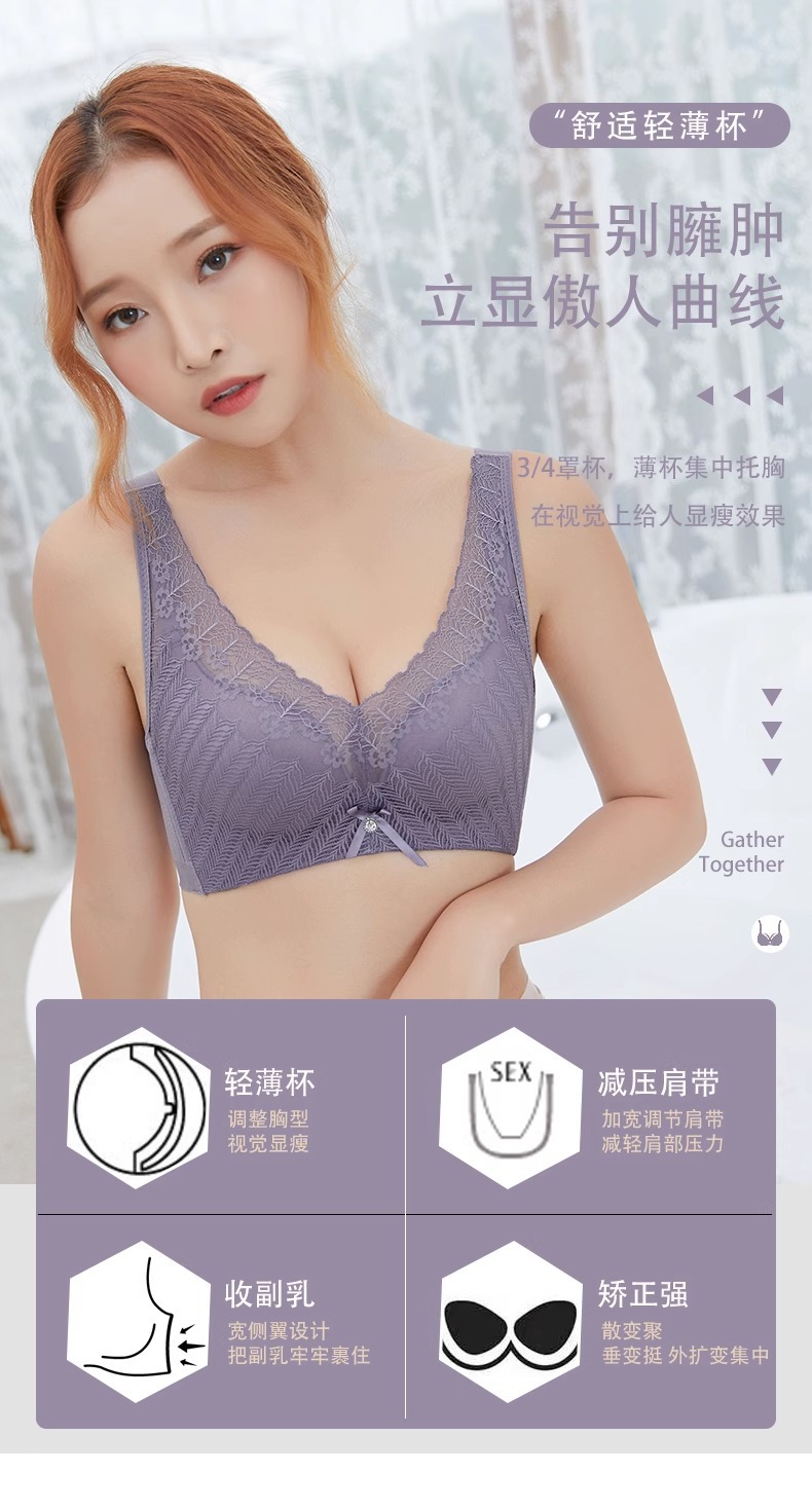 자석 없는 얇은 브라, 가슴 처짐 방지, 조절 가능한 브라, 통기성 좋고 피부 친화적인 노와이어 브라, 섹시한 큰 가슴을 작아 보이게 하는 브라스토어 가기