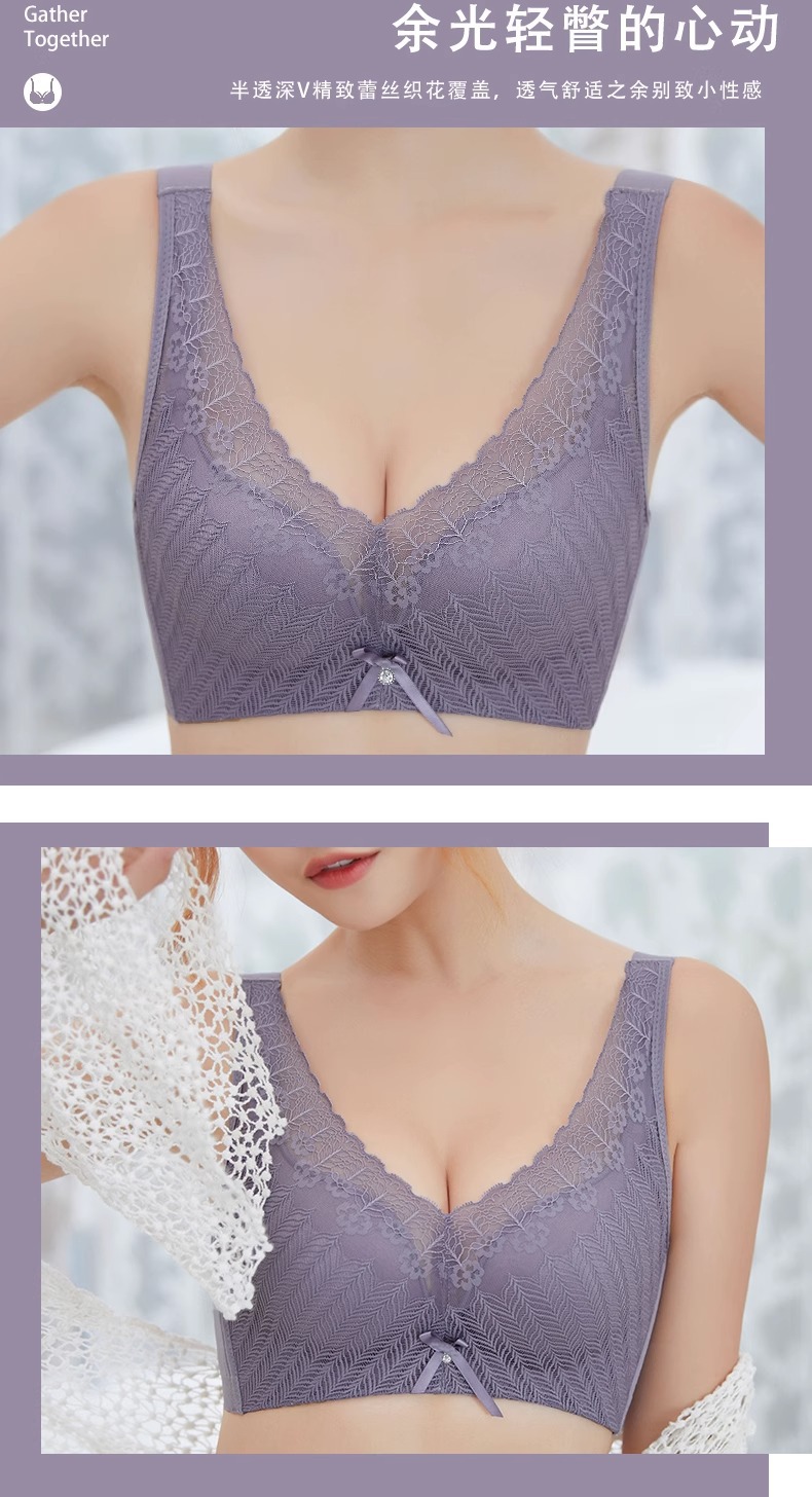 자석 없는 얇은 브라, 가슴 처짐 방지, 조절 가능한 브라, 통기성 좋고 피부 친화적인 노와이어 브라, 섹시한 큰 가슴을 작아 보이게 하는 브라