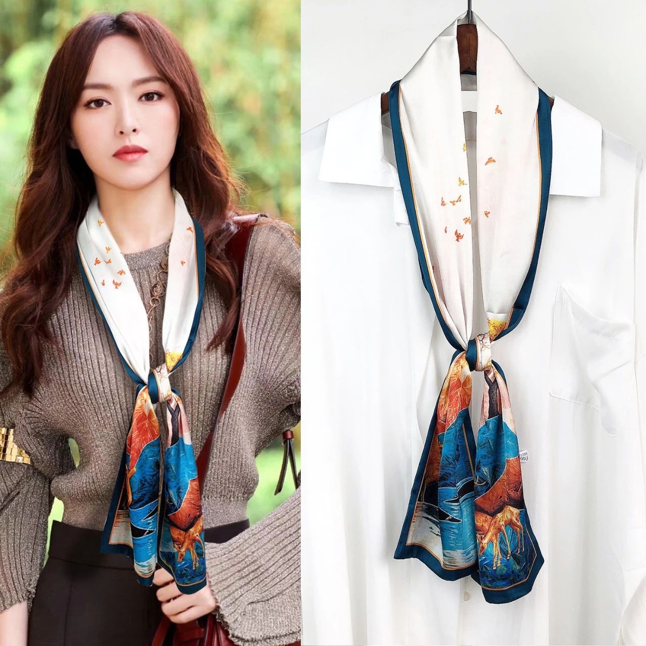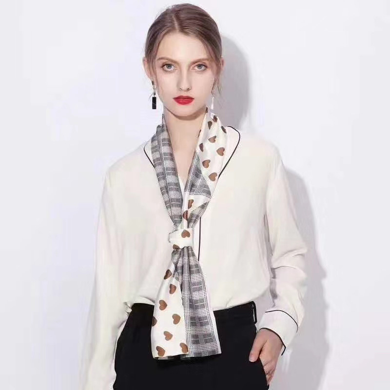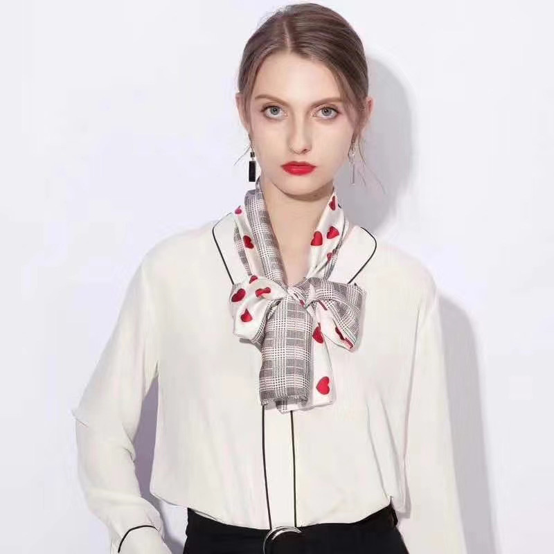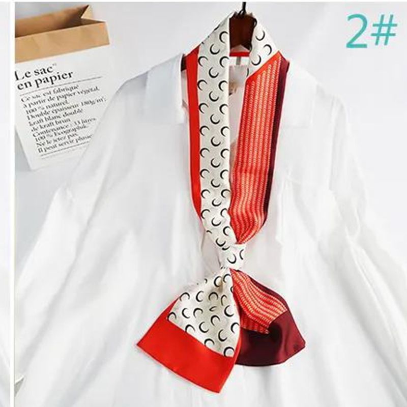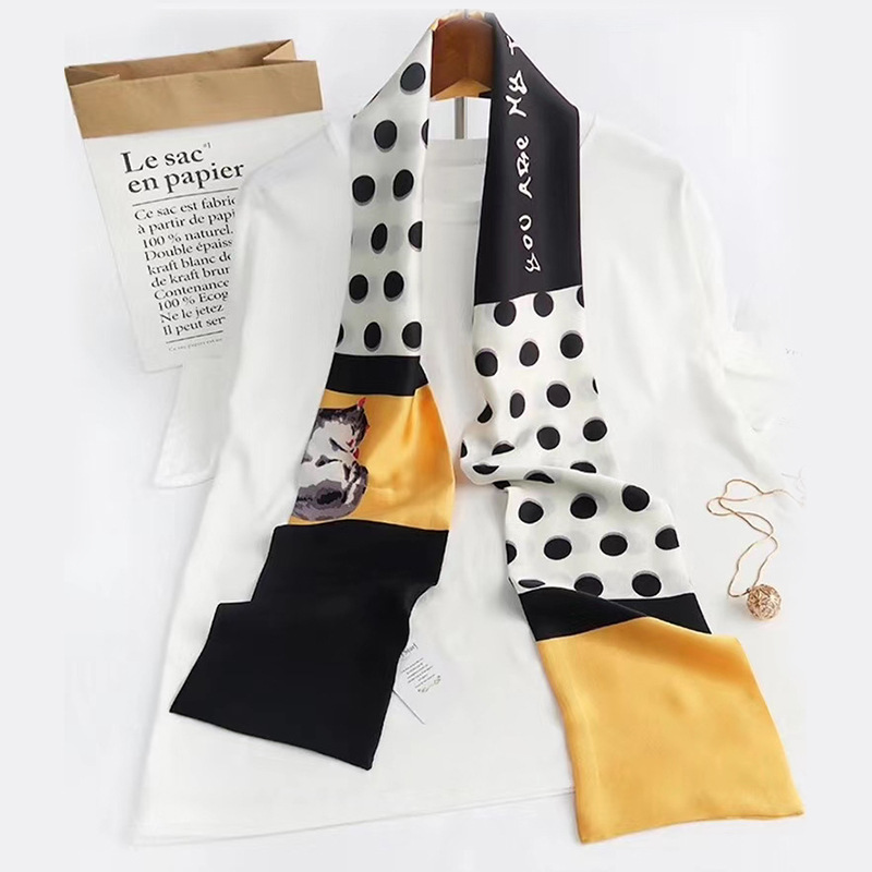 새로운 긴 스카프 여름 도매 여자의 실크 넥타이 머리 장식 리본 모든 일치 달콤한 인쇄 작은 스카프