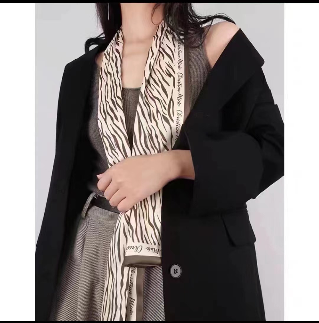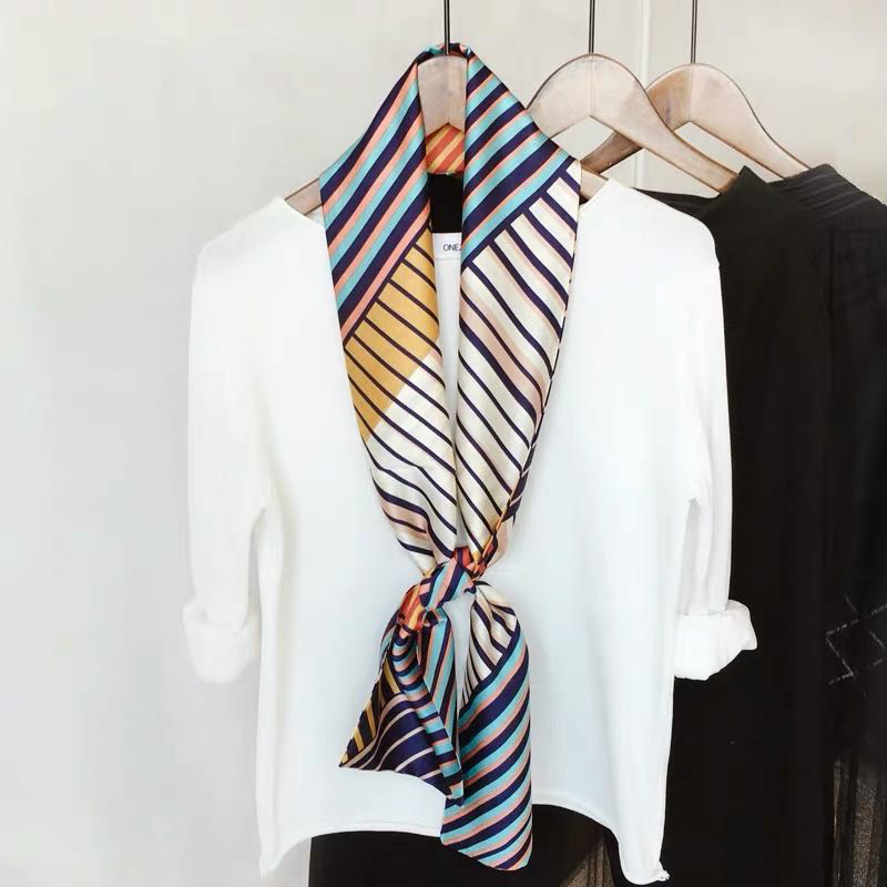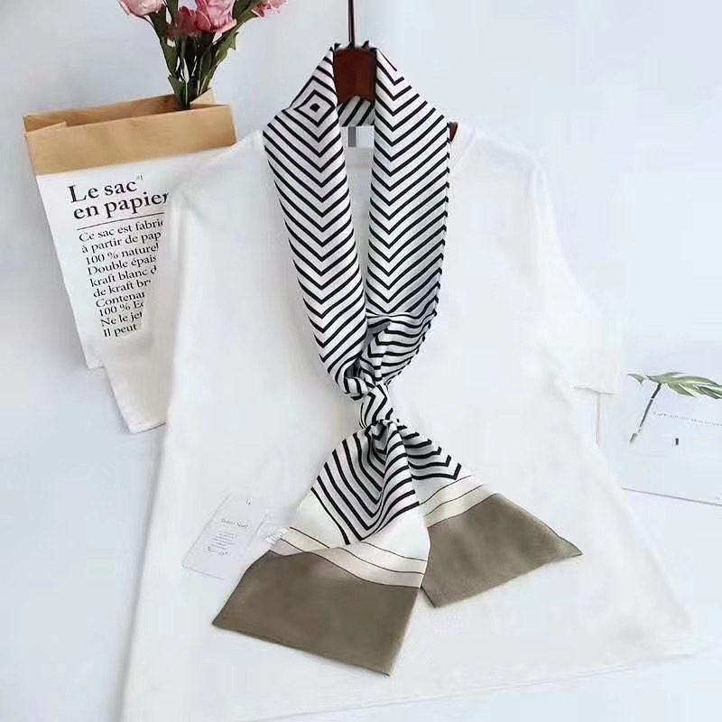 北欧条纹ins印花丝巾小方巾加厚 女士仿真丝围巾职业装饰领巾热销