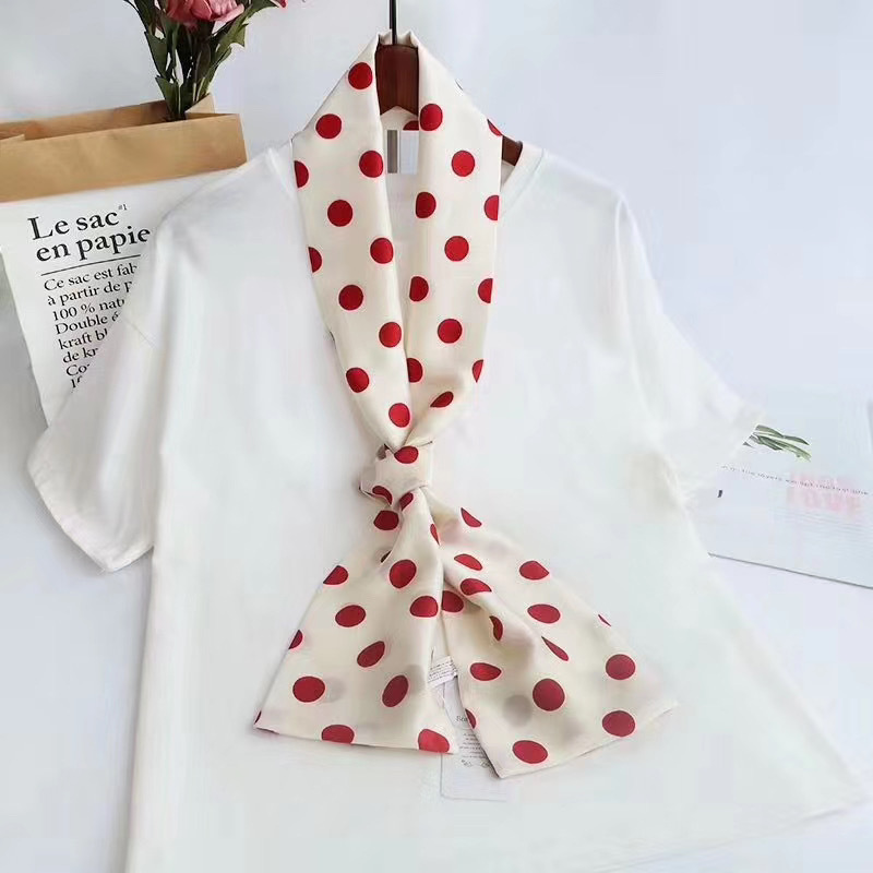 韩版波点仿真丝防晒丝巾女 明星同款领巾加宽长条围巾厂家批发