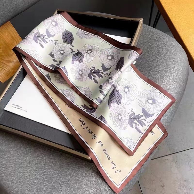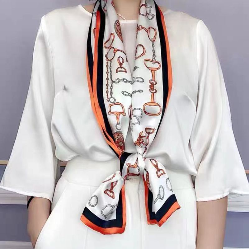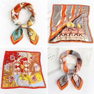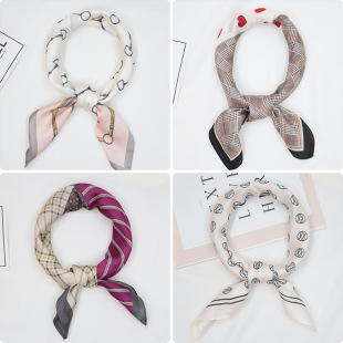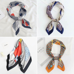 韩版印花丝巾仿真丝70小方巾 女士职业装饰领巾百搭绑包跨境现货