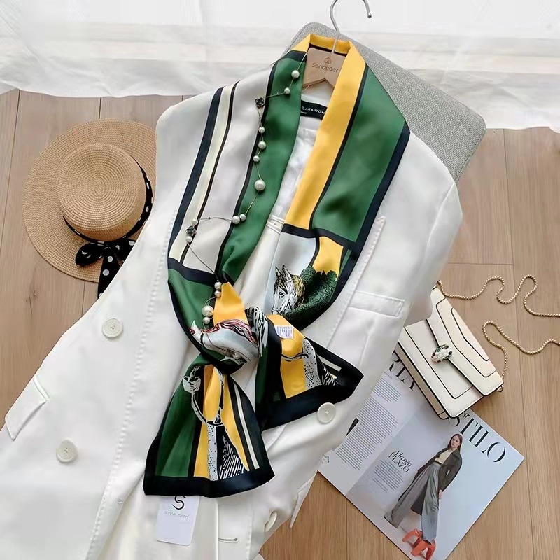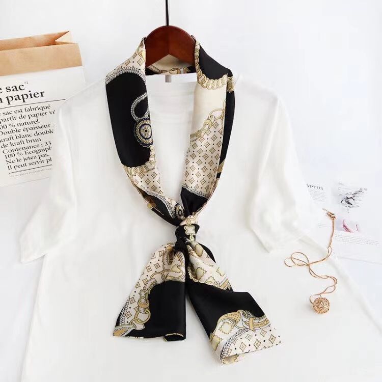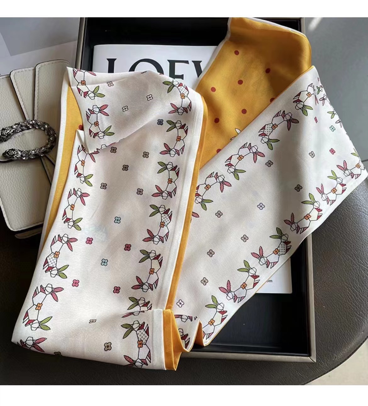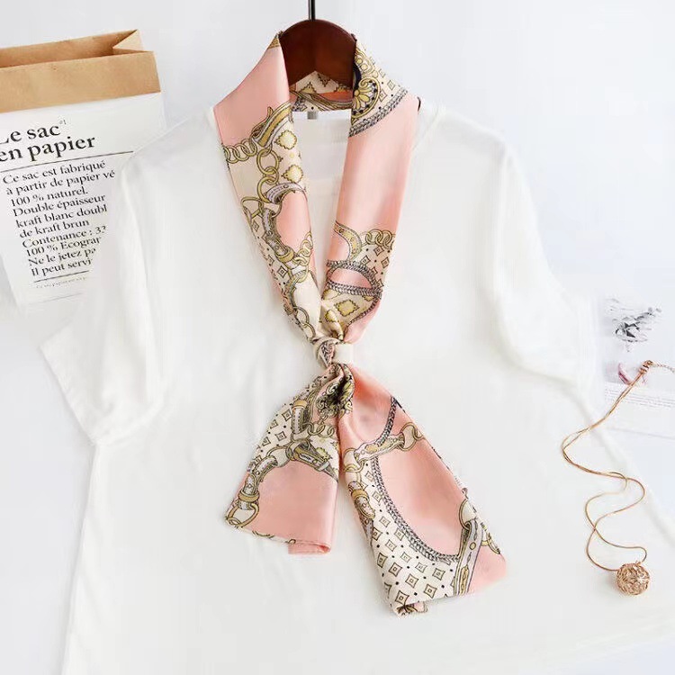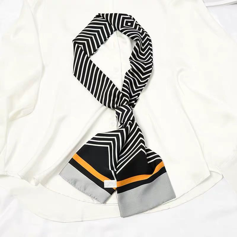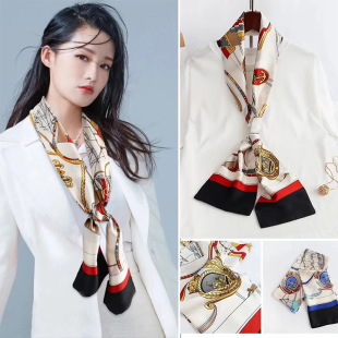 热销双面印花平角丝巾仿真丝 长巾绑包配饰小丝带女网红创意领巾