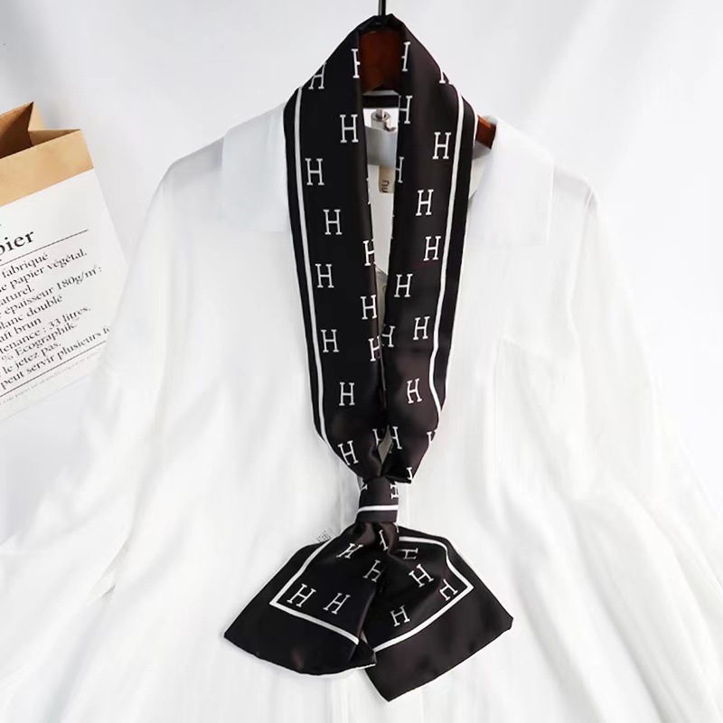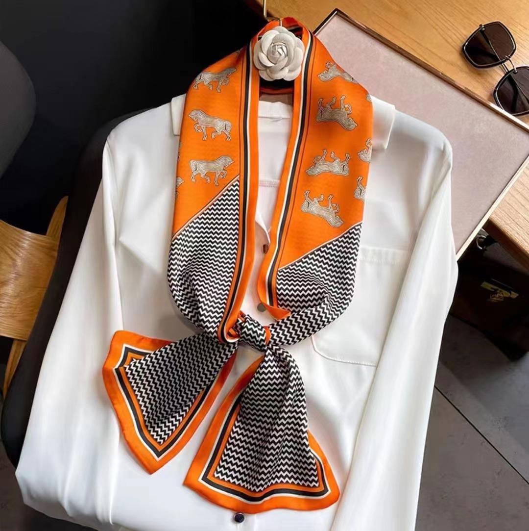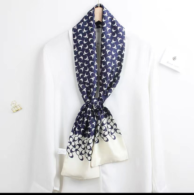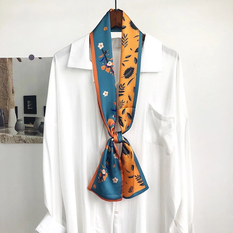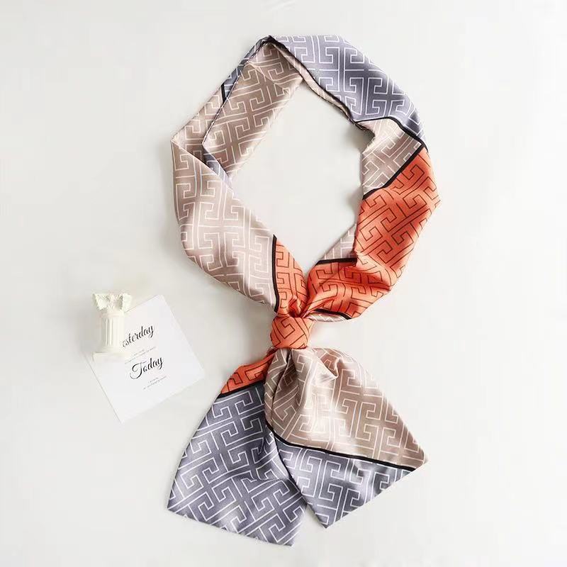 热销双面印花平角丝巾仿真丝 长巾绑包配饰小丝带女网红创意领巾