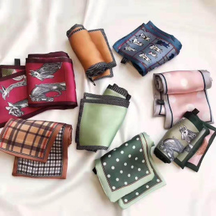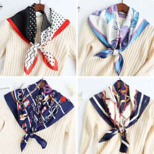 新款韩版小方巾女 时尚百搭印花仿真丝70*70小领巾丝巾围巾批发