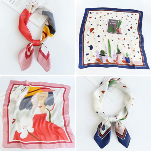 创意卡通印花职业丝巾 70*70cm仿真丝小方巾ins风小领巾外贸批发
