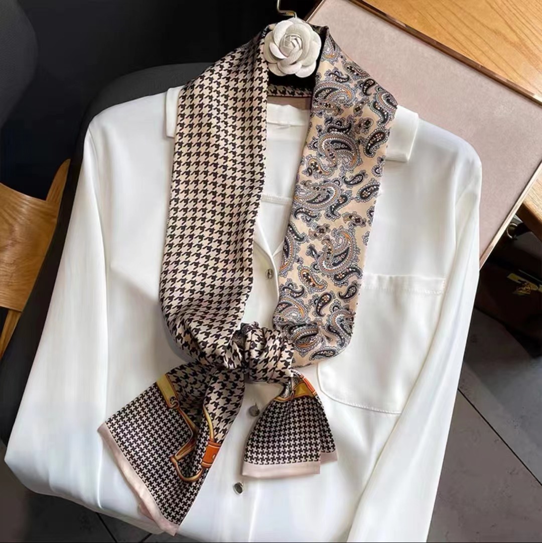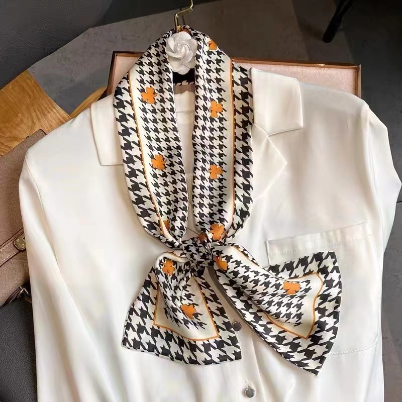 2020新款时尚丝巾女 包包装饰职业领巾印花千鸟格扎手纱巾配饰