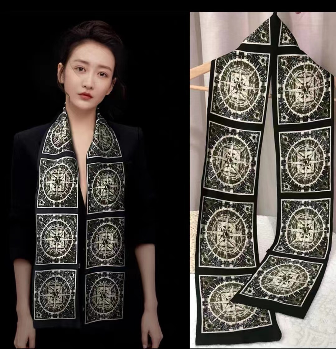 塔罗牌双层双面印花丝巾仿真丝长巾绑包配饰小丝带女网红创意领巾