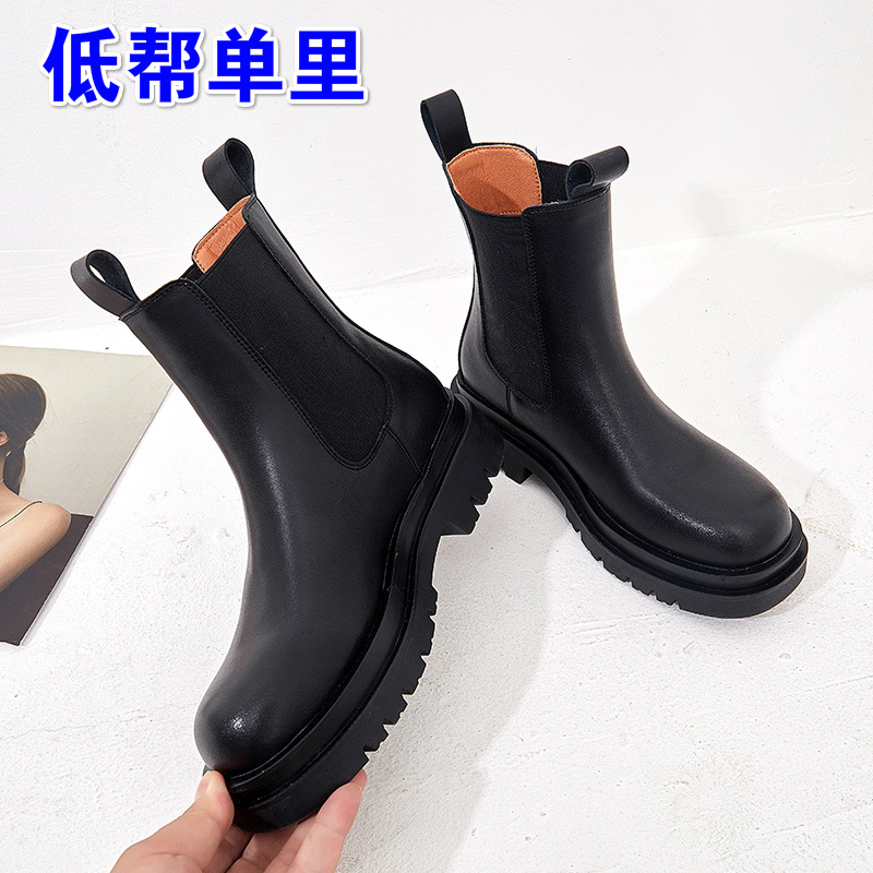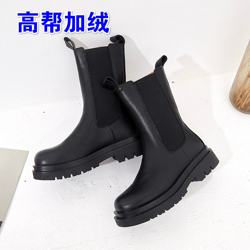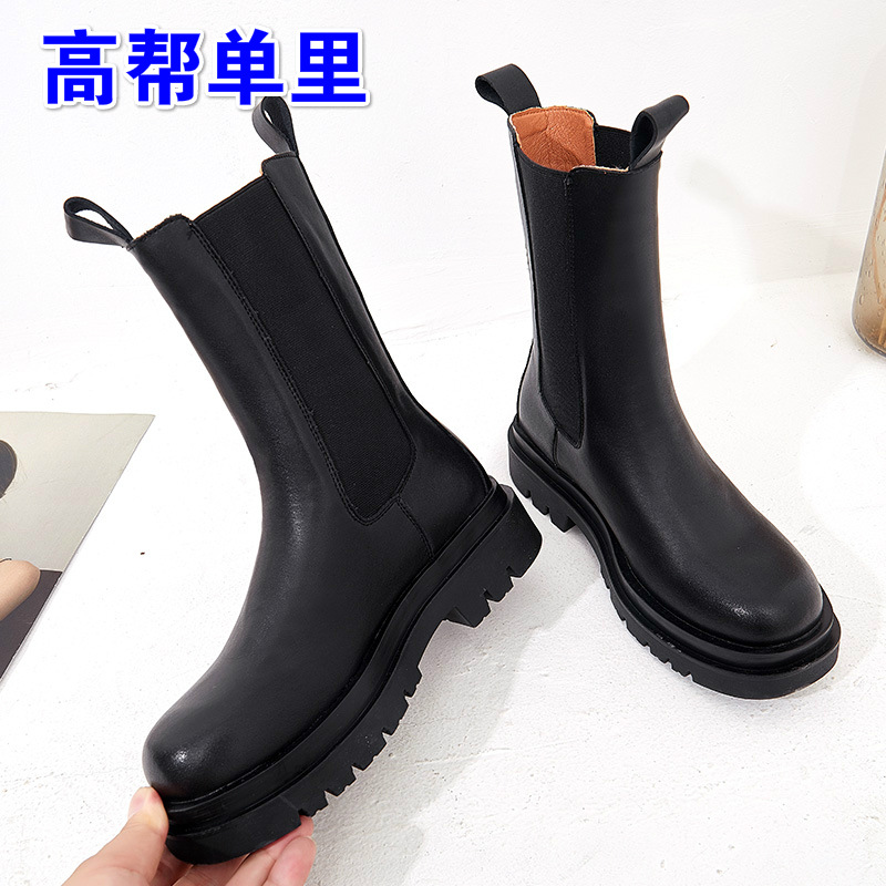 스모크 훌 부츠 2025 봄 가을 신상 1층 소가죽 마틴 부츠 여성용 첼시 하이탑 대형 플러스 벨벳 숏부츠 여성용스토어 가기