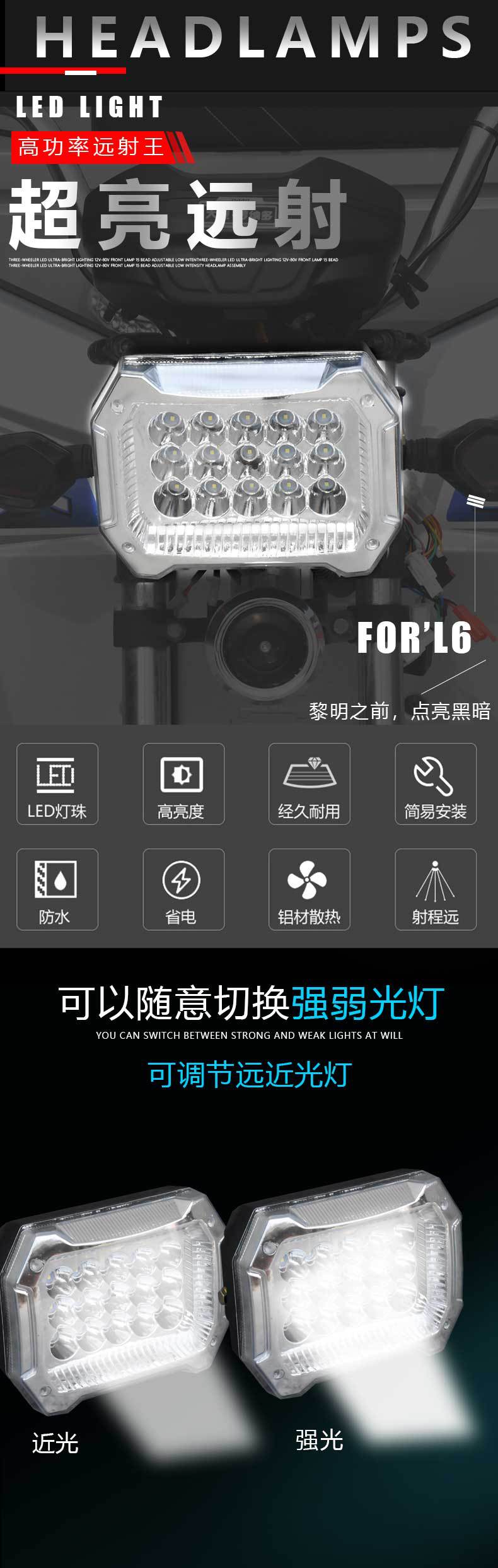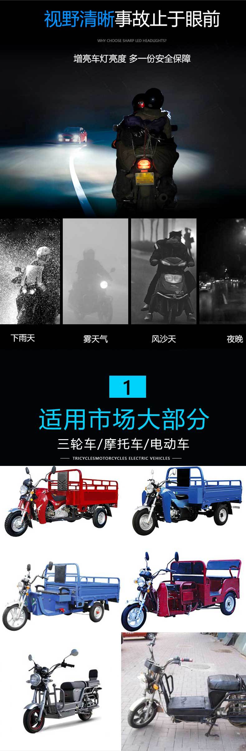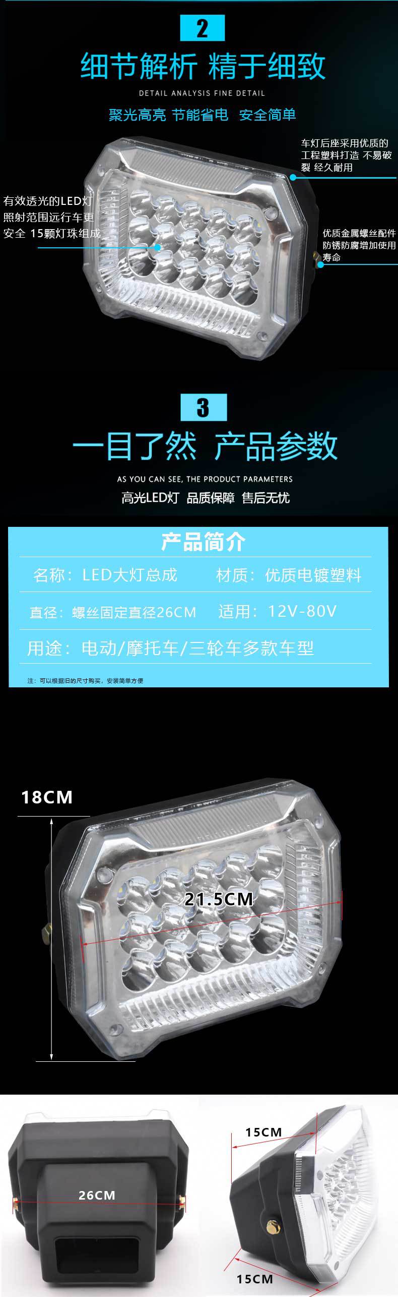 전기 세발 자전거 전조등 슈퍼 브라이트 LED 전조등 세발 자전거 수정 전조등 12V48V60V 유니버설