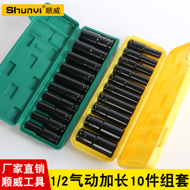 Shunwei 10 피스 공압 연장 슬리브 세트 1/2 전기 영동 블랙 수동 슬리브 길이 공압 슬리브 육각형