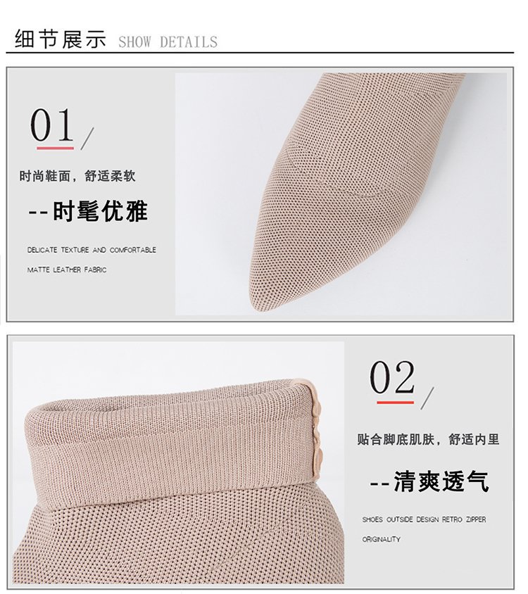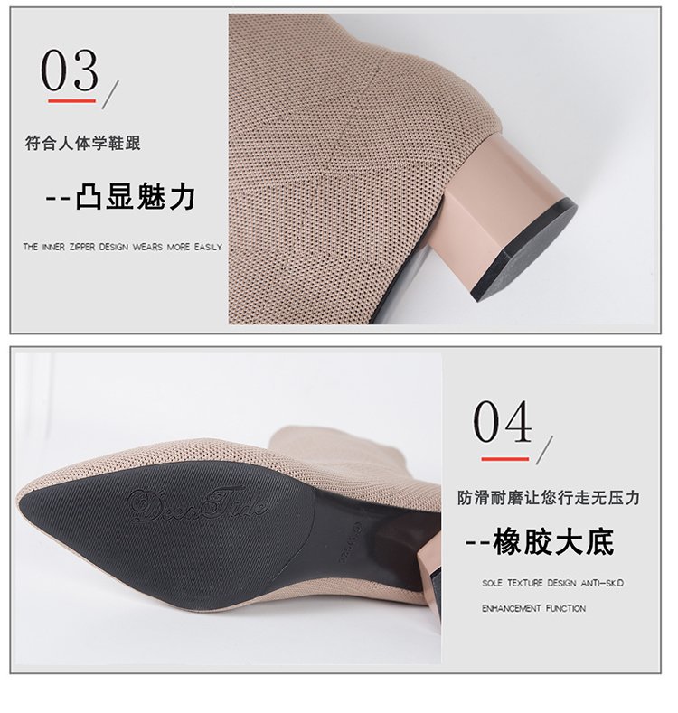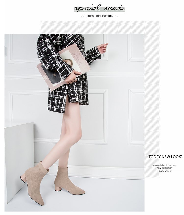 2025 가을 겨울 신상 여성용 포인티드 토 미드카프 부츠, 두꺼운 굽의 니트 유럽 및 미국 패션 신축성 부츠, 편안한 캐주얼 양말 부츠스토어 가기