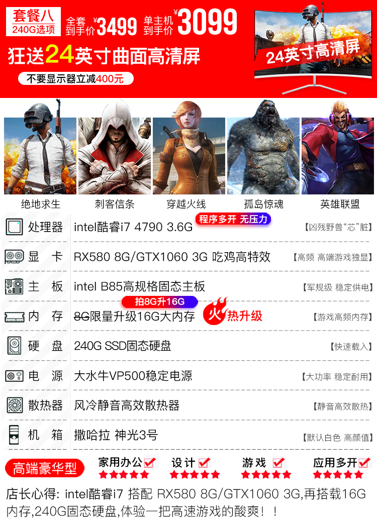 [24가지 새 모델] 데스크탑 컴퓨터 호스트 풀 세트 고급 i5 수냉식 e스포츠 게임 사무실 홈