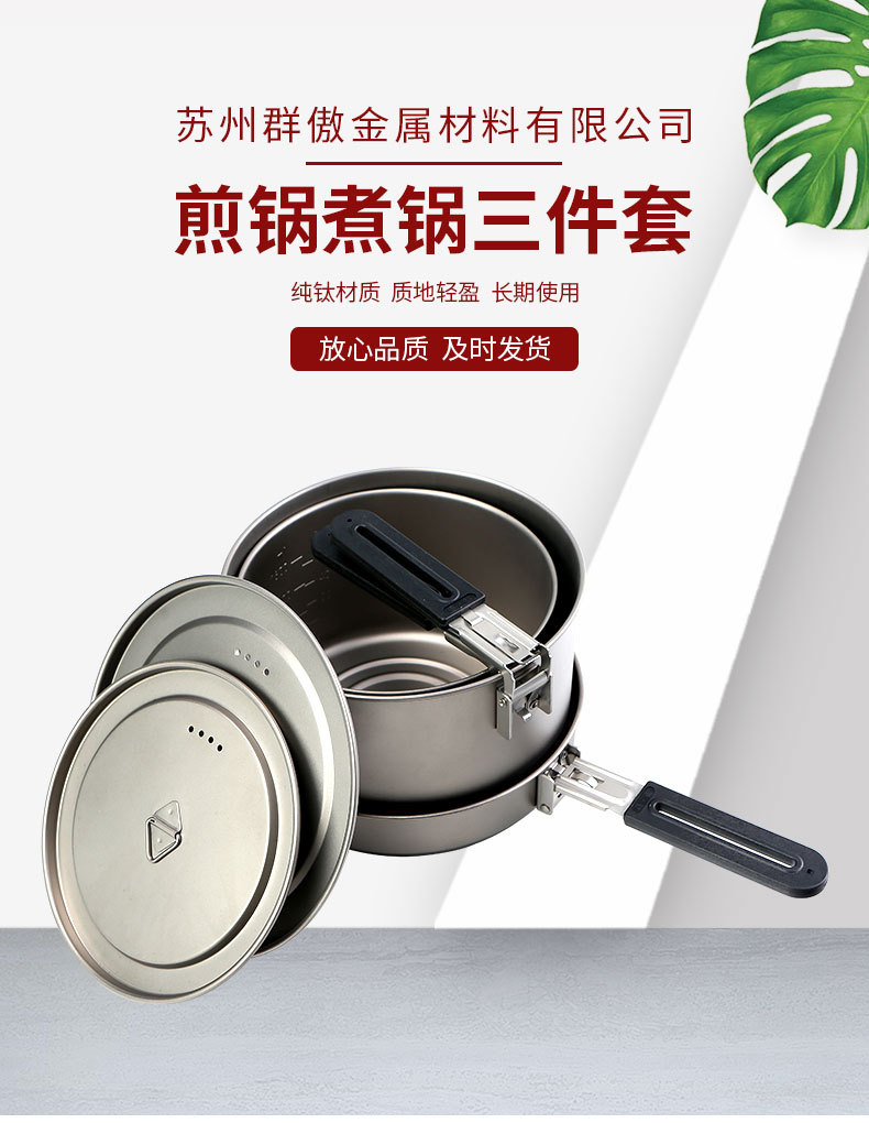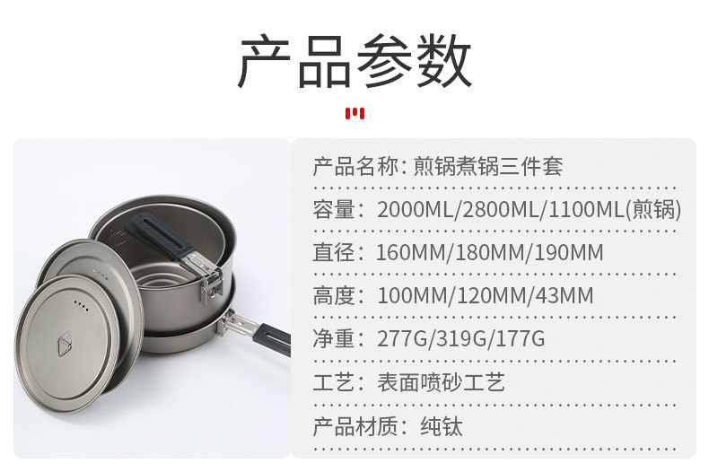 프라이팬 3 종 세트 퓨어 티타늄 휴대용 캠핑 국수 요리 밥 프라이팬 프라이팬 2-4 인용 야외 조리기구스토어 가기