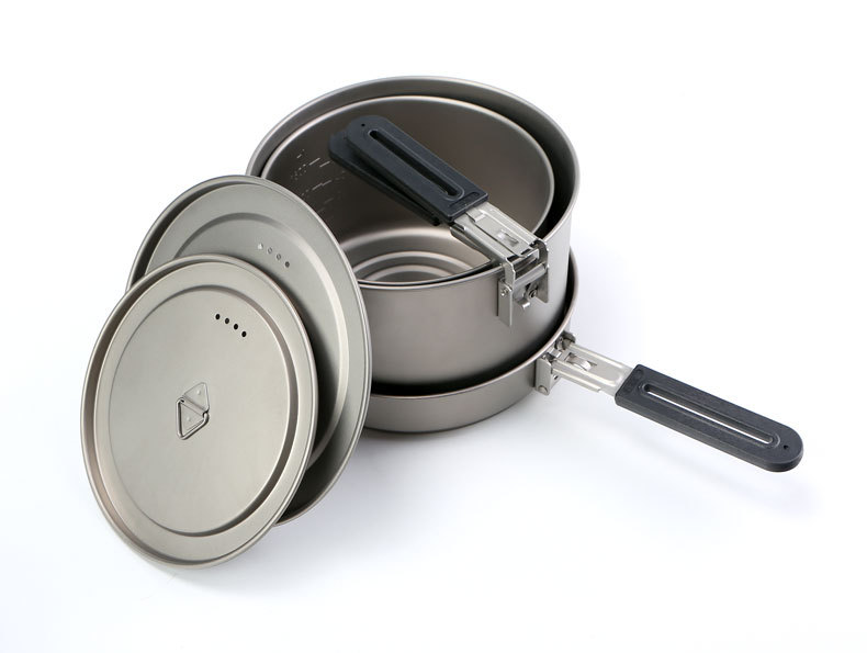 프라이팬 3 종 세트 퓨어 티타늄 휴대용 캠핑 국수 요리 밥 프라이팬 프라이팬 2-4 인용 야외 조리기구