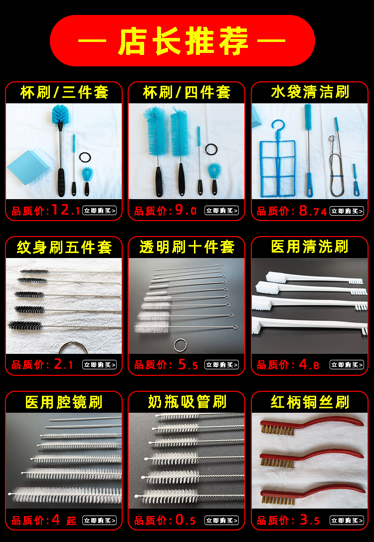 主要生产:电子烟雾化器清洁毛刷,奶瓶刷,保温杯刷,纹身器材清洁刷,弹簧管刷、奶嘴刷、吸管刷,水族管清洁刷,导管刷,试管刷、不锈钢线刷,铜丝刷、工业刷、生活用品刷等系列刷子