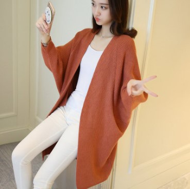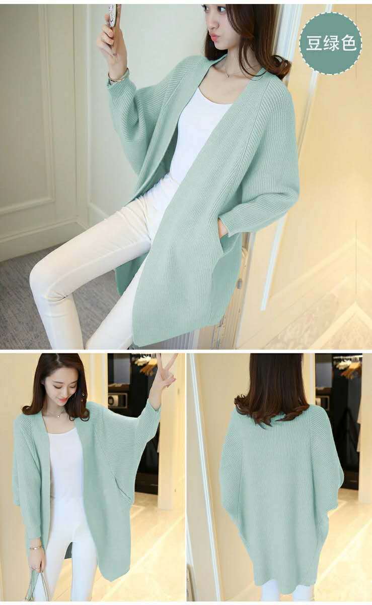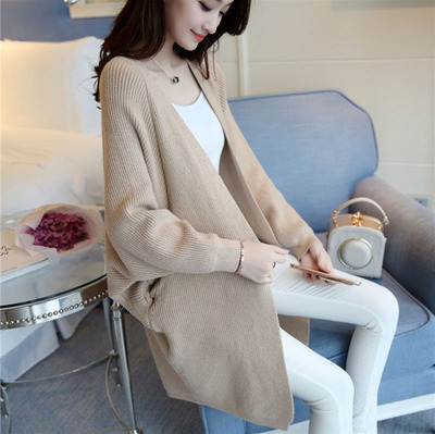 중간 길이 올매치 가디건 여성용 한국식 루즈한 돌먼 슬리브 니트 스웨터 가을 새 포켓 스웨터 여성 코트스토어 가기