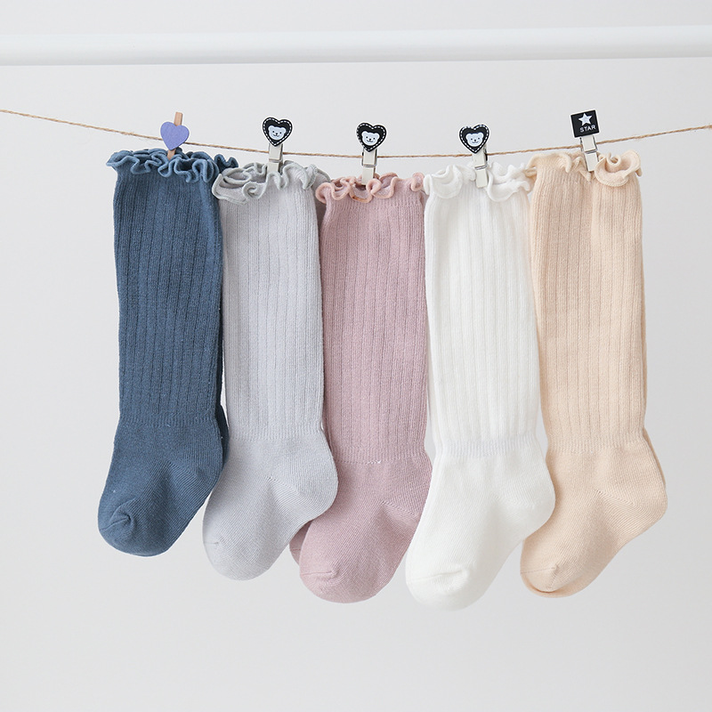 2024 가을 겨울 어린이 귀마개 무릎 위 스타킹 아기 아기 양말 무지 느슨한 무릎 중간 길이 스타킹