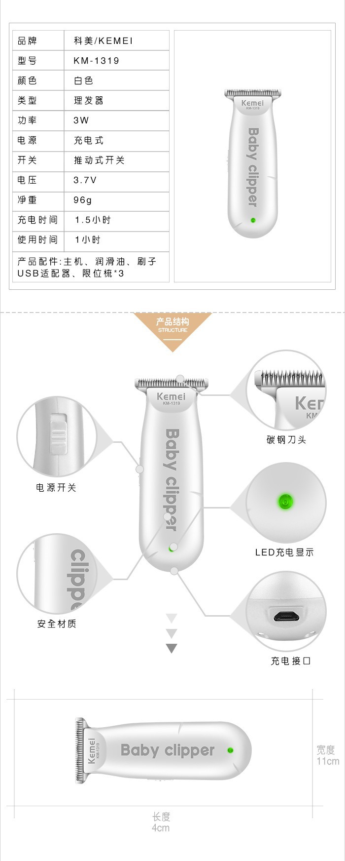 包装尺寸:13.5*8*4.5cm 带包装重量187g